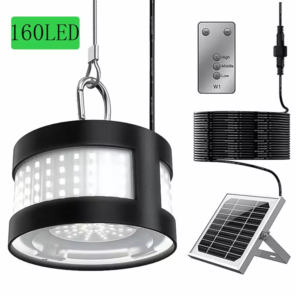 160 LED Solar Lights Outdoor Waterproof Solar Pendant Lights with Remote Dusk to Dawn Solar Powered Security Flood Lights for Indoor Shed Patio Garage Yard 1PACK