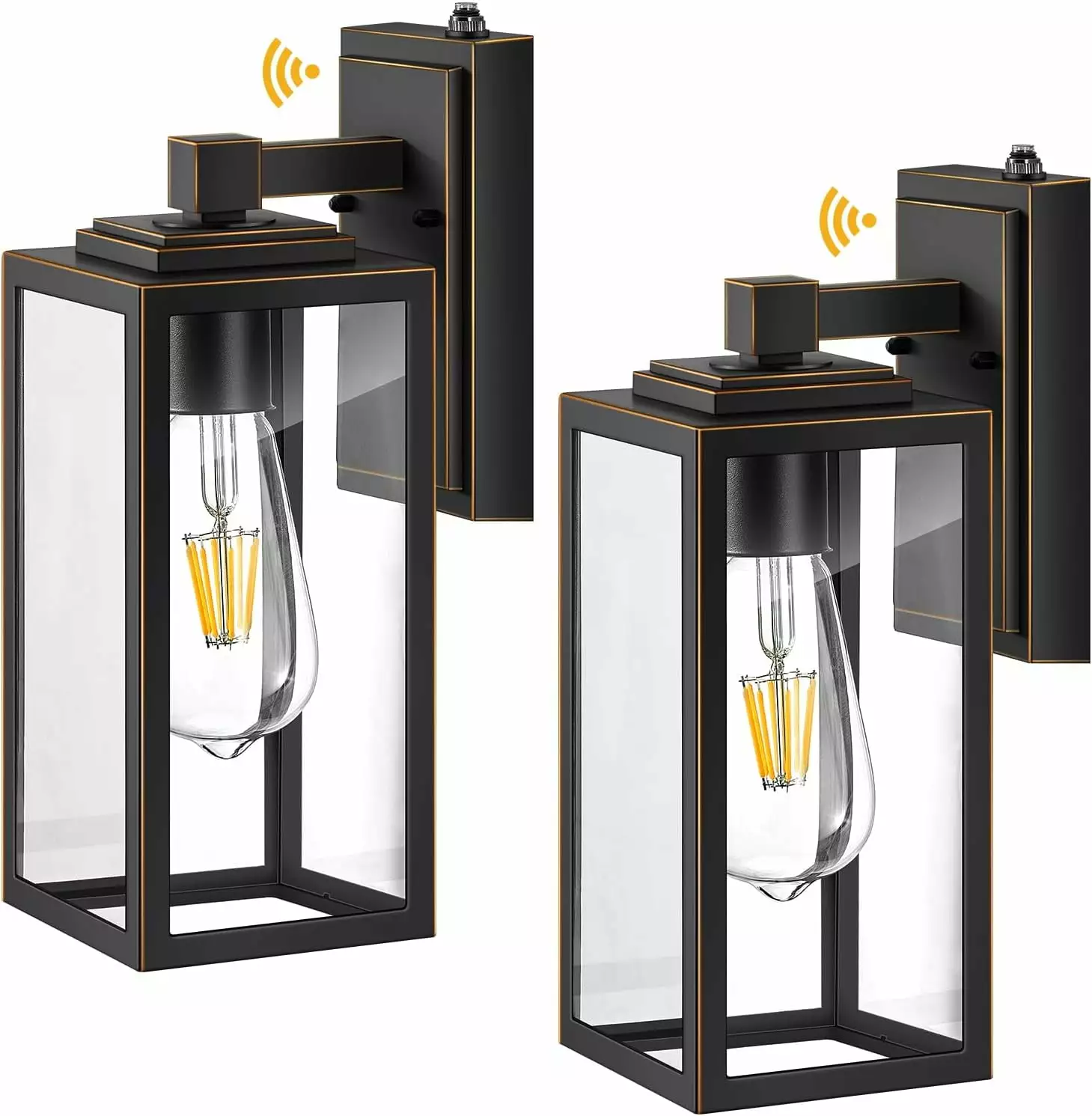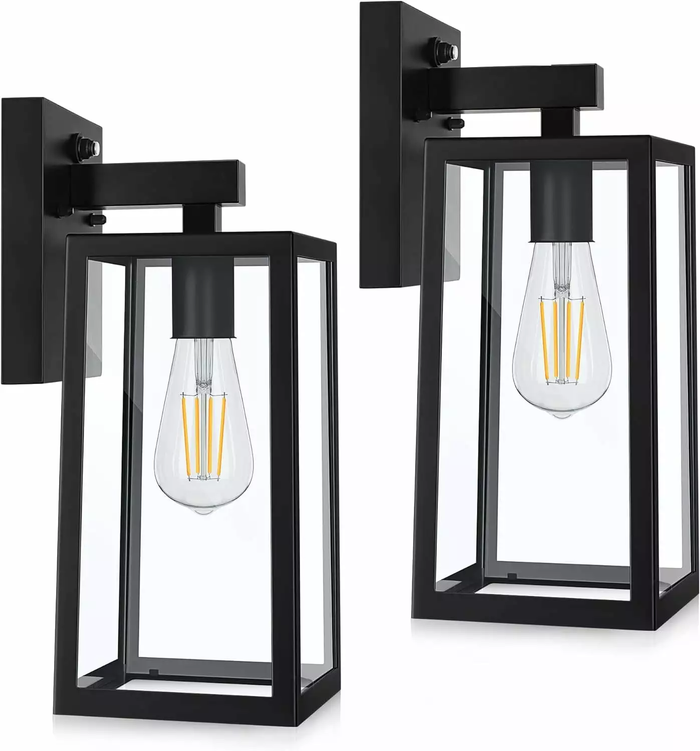 2 PACK Dusk to Dawn Outdoor Wall Lights Fixtures. Waterproof Outside Porch Light for Houtilize. Matte Black Exterior Light Fixture with Clear Glass Shade. Anti-Rust Wall Mount Lamp for Garage
