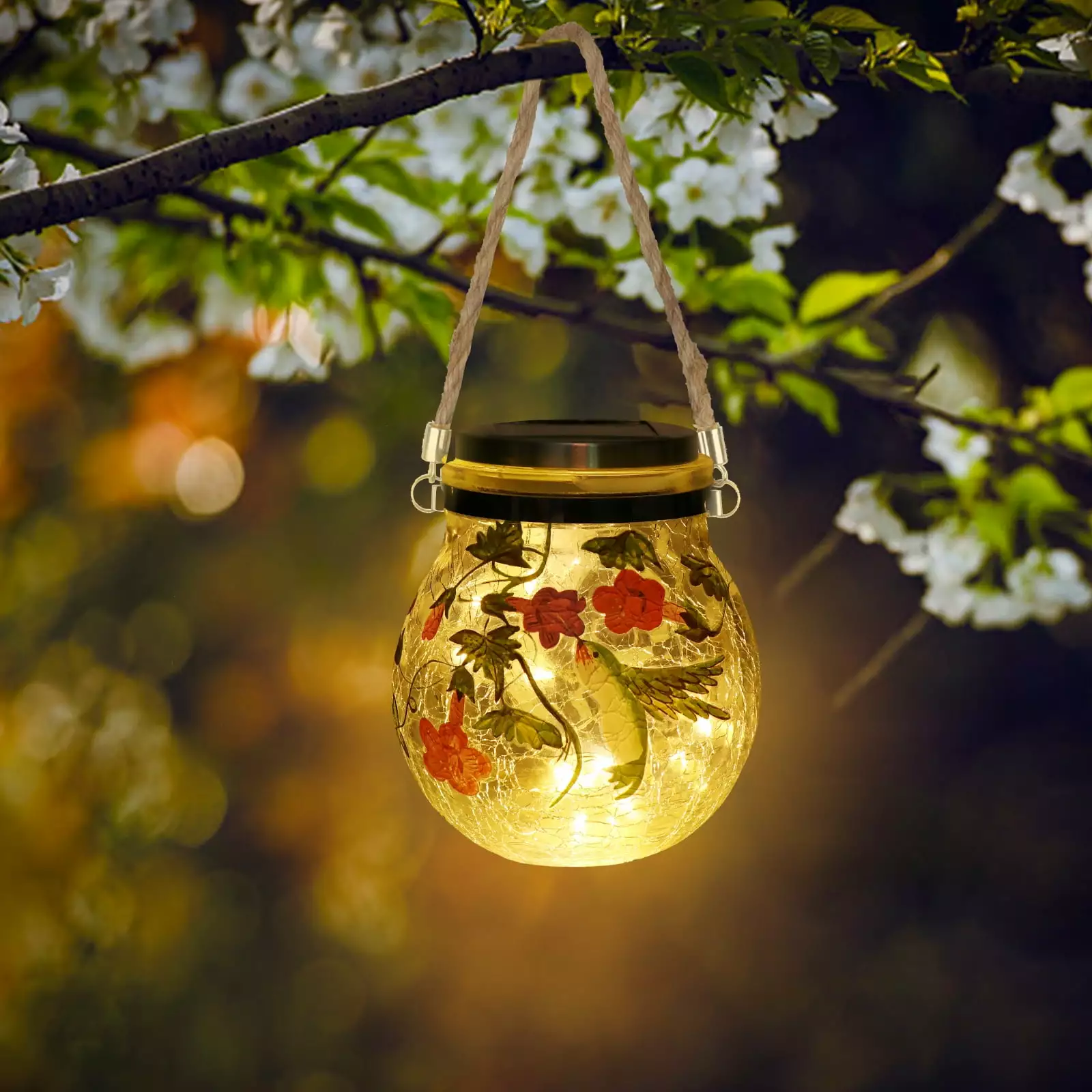 2 Pack Hanging Solar Lights – Waterproof Solar Garden Lanterns Glass Outdoor Decorative Landscape Hanging Lanterns Green Hummingbird