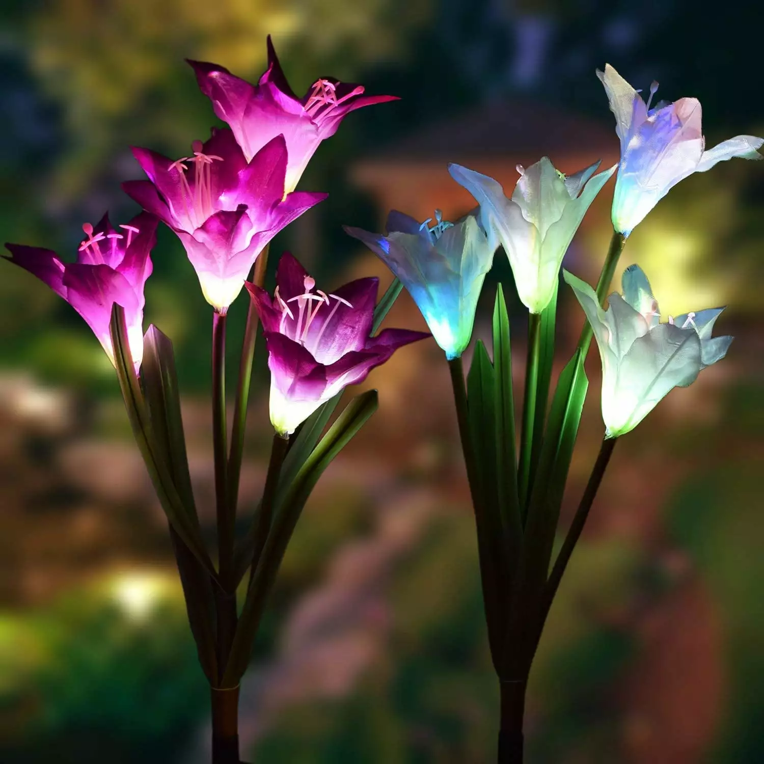 2 Pack Outdoor Solar Lights. Solar Garden Lights with 8 Lily Flowers. Multi-Color Changing Decorative Landscape Light for Garden. Patio. Yard