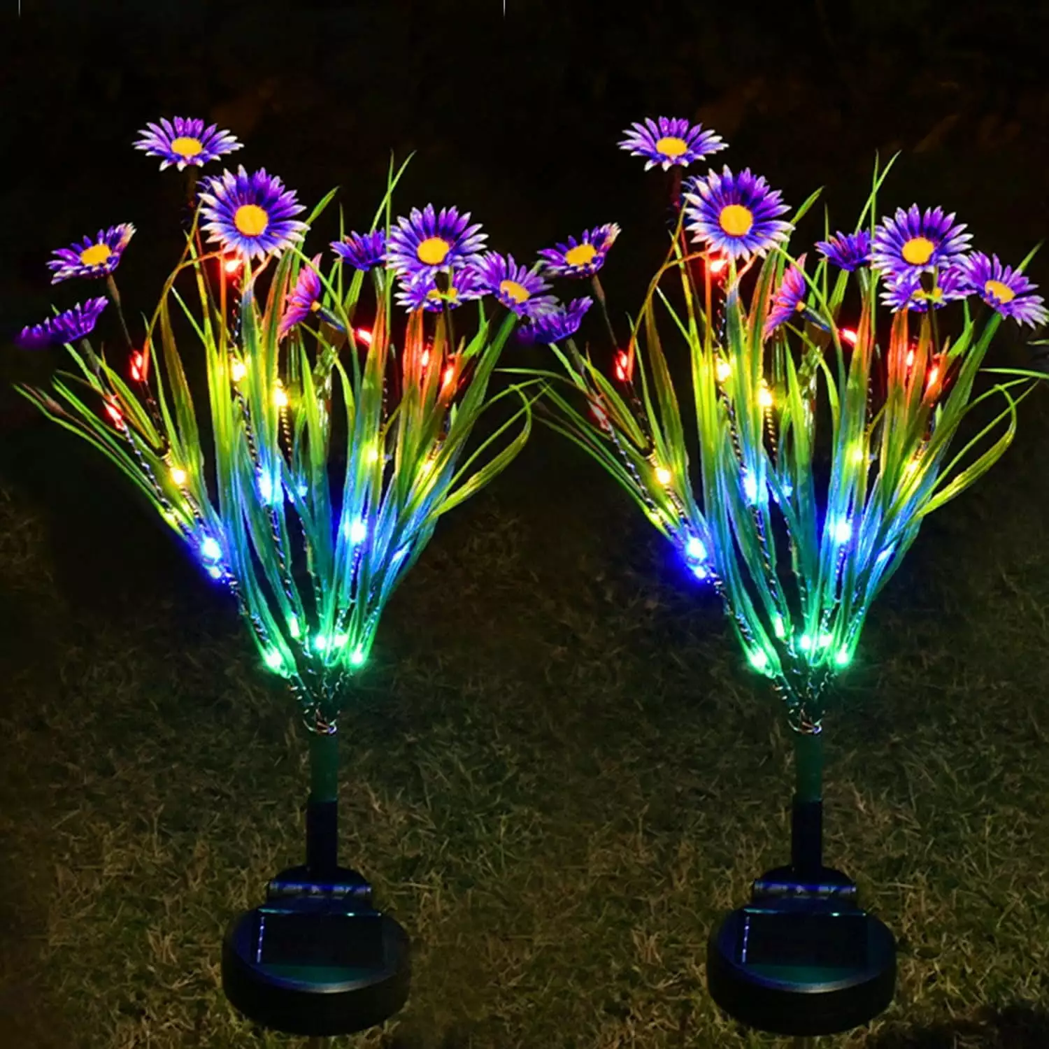 2 Pack Solar Flower Lights Outdoor. 28 LED Wildflower Solar Garden Stake Lights. Multi-Color Changing LED Solar Powered Landscape Lights Waterproof for Yard Garden Patio (Purple)