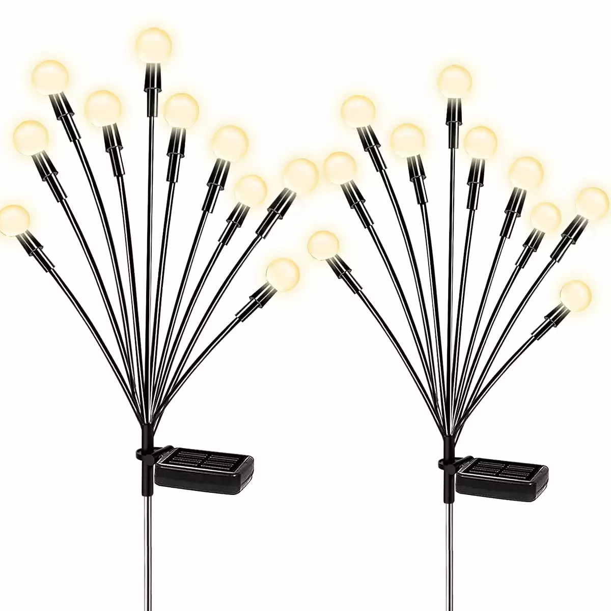 2 Pack Solar Garden Lights. New Upgraded 8 LED Firefly Lights Solar Outdoor Waterproof. High Flexibility Swaying Lights Solar Outdoor Lights for Pathway Patio Yard Walkway Decoration. Warm White