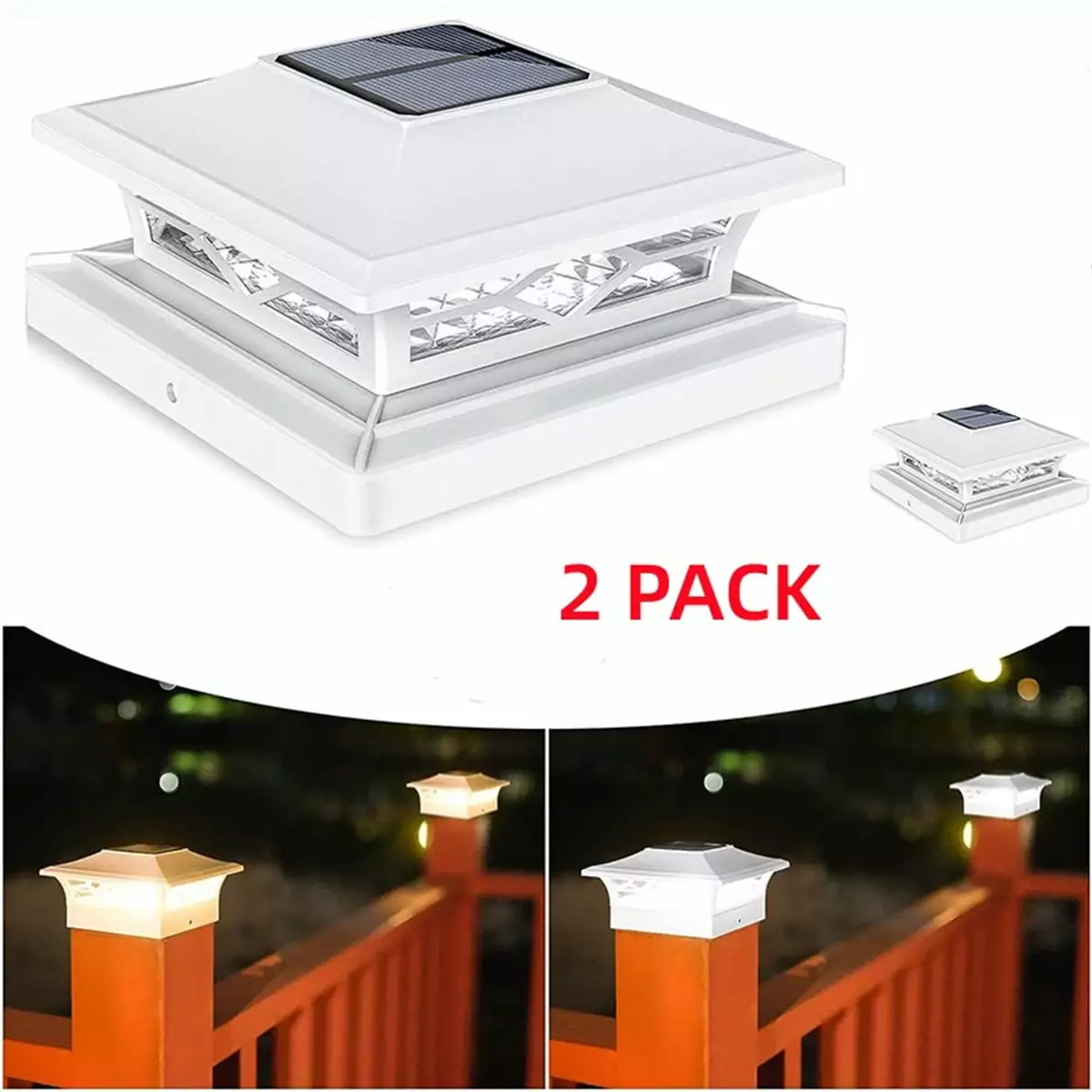 2 Pack Solar Post Cap Lights. 4”x4” 6”x6” Outdoor LED Fence Post Cap Lights. 2 Color Modes Solar Powered Deck Lights for Dock Waterproof. fit for Wooden/Vinyl Posts