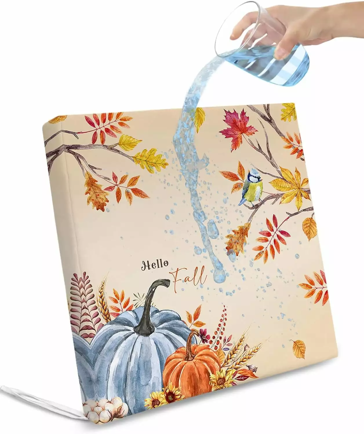 2 Pack Indoor/Outdoor Seat Cushion Cover. Hello Fall Pumpkin Cushion Covers Waterproof Patio Chair Cushion Slip Cover With Ties For Garden Cushions Pad 20Lx18W Orange Maple Leaf Thanksgiving
