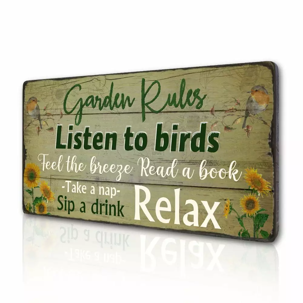 TIANCENTRAL H Rustic Vintage Garden Signs - 16x8 Inches. Robins Sunflowers. Farmhoutilize Retro Decor. Easy Hanging Plaques