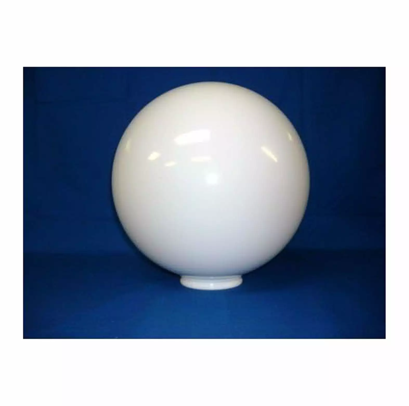 The globe measures 11 18" before the neck and 12" including neck. The circumference of the globe is 37 14" or 11.86 inches in diameter. The necks outside diameter measures 3 78" and measures 3 14" inside hole diameter. This globe is meant to fit on a 4" fitter or ring secured with set screws. Please check your fixture or existing globe for reference. Acrylic is the type of material that they are made of. These globes are absolutely UV stabilized and resistant to UV rays. Acrylic is a material resistant to weathering and aging and has an exceptional brilliance. The shine does not diminish even after prolonged use. thanks to an optimum surface hardness.