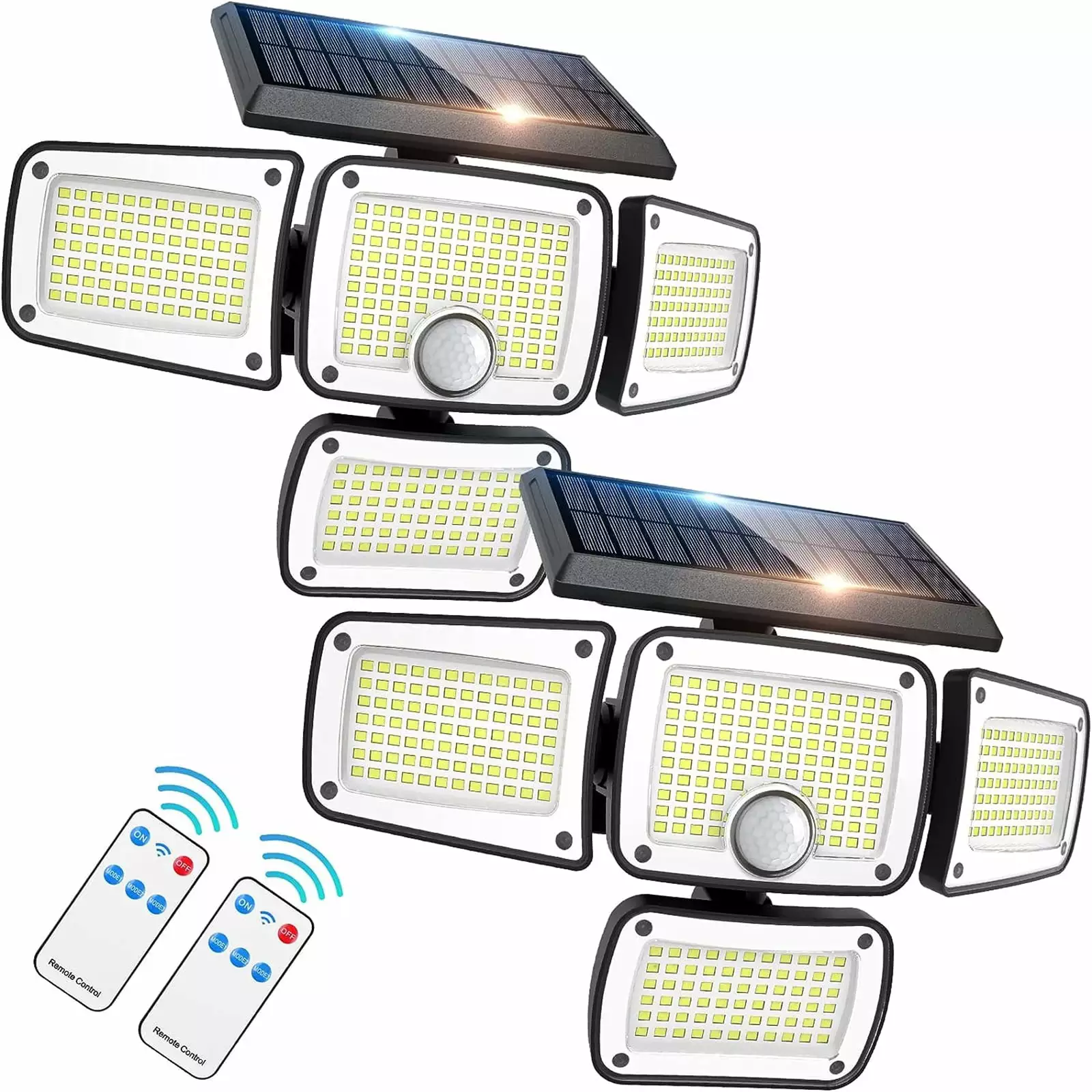 Solar Lights Outdoor Waterproof.346 LED 3000LM Motion Sensor Lights with Remote Control.4-Head High Brightness Flood Lights.Sensitive PIR Motion Inductor Security Light.IP65 Solar Lights for Outside.