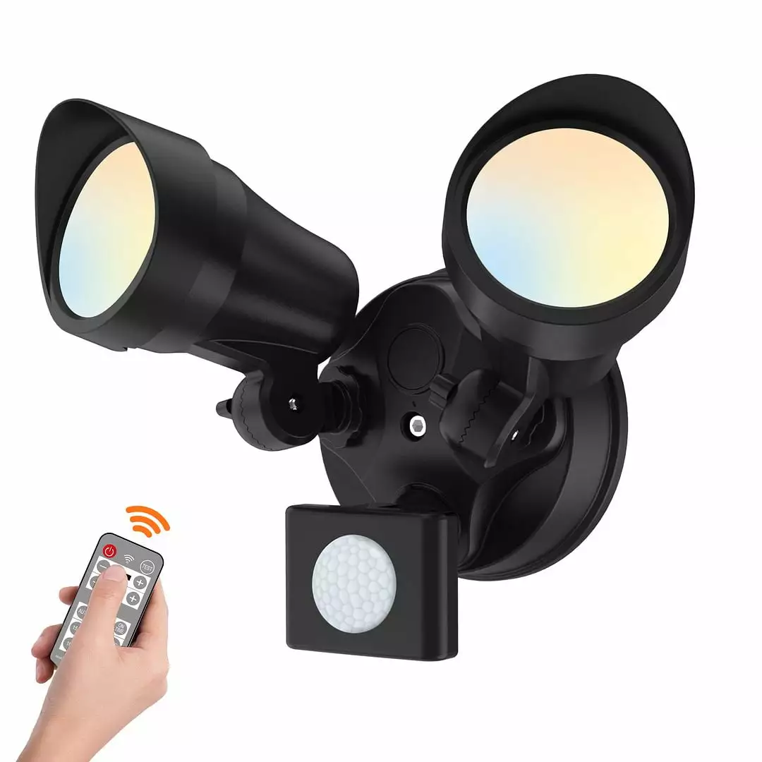 ALUSSO LED Security Light for Outdoor. 30W 2400LM Floodlight with Motion Sensor. Dusk to Dawn. Remote Control. 2 Adjustable Heads