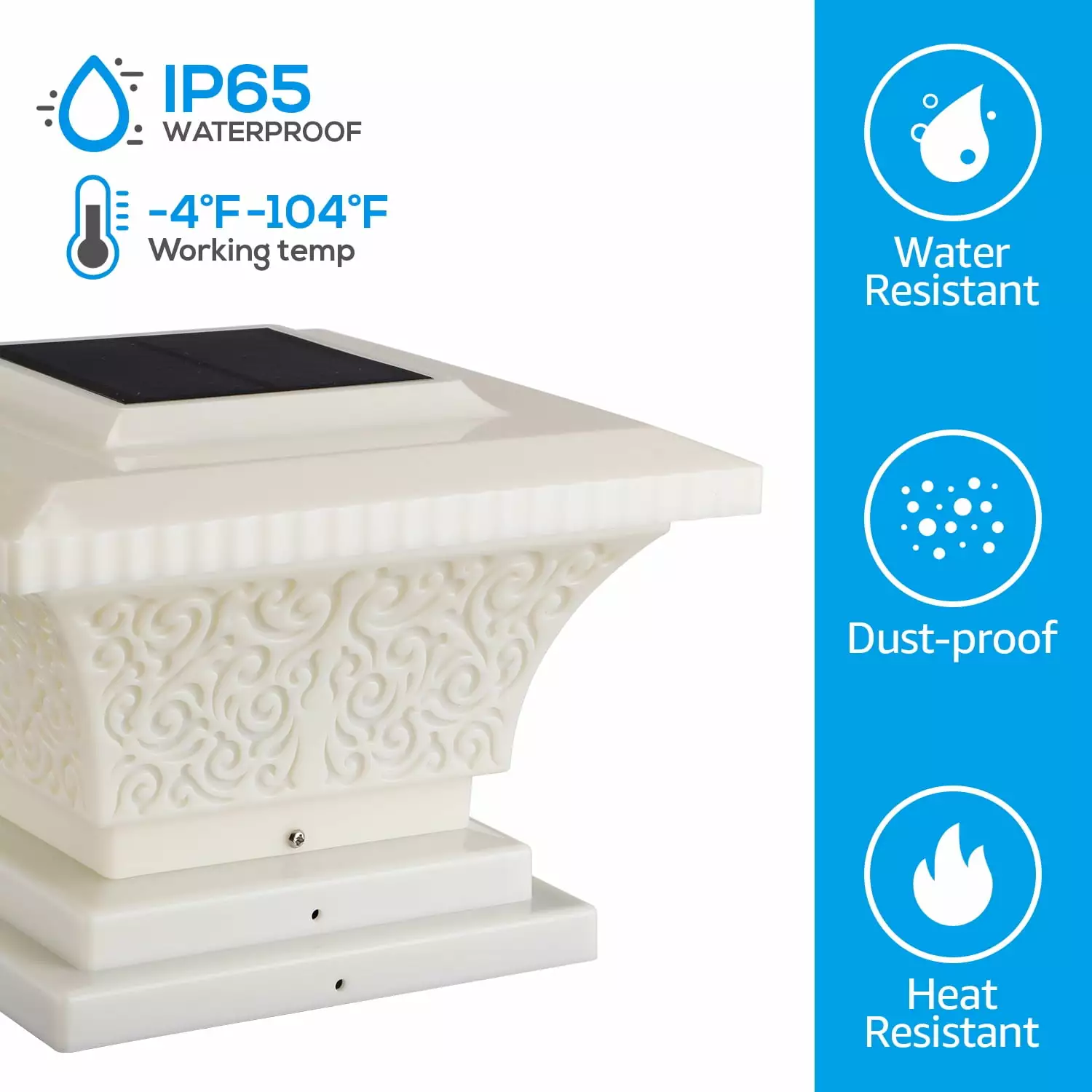 IP65 waterproof and creating a spectacular lighting effect thanks to the high-quality LED chips. this light is perfect for fences. yards. decks. and so much more. It’s a great fit for 4x4inch. 5x5inch. and 6x6inch PVC. wood. and vinyl posts.