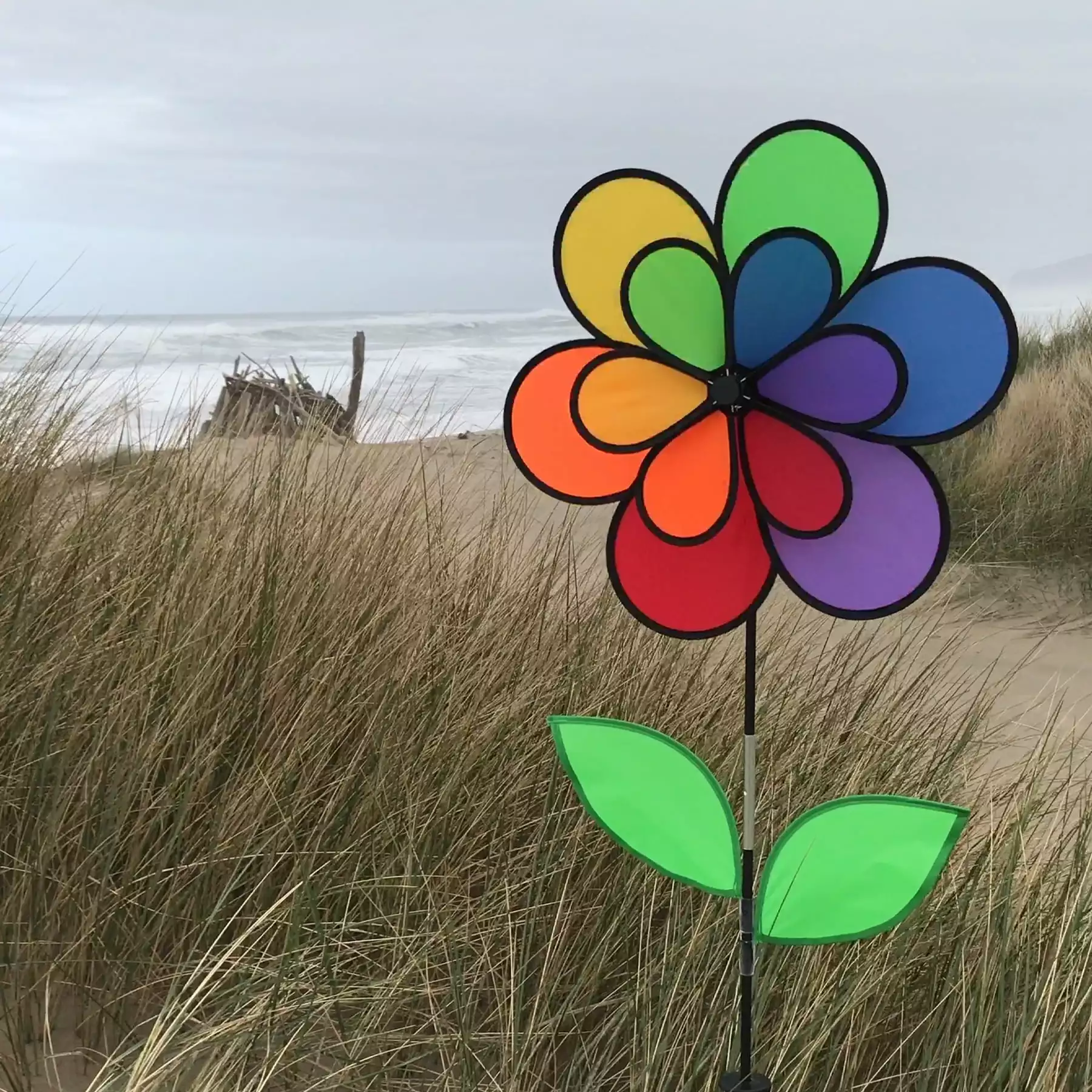 12 Petal Double Wheel Rainbow Flower Wind Spinner In the Breeze Yard Decor