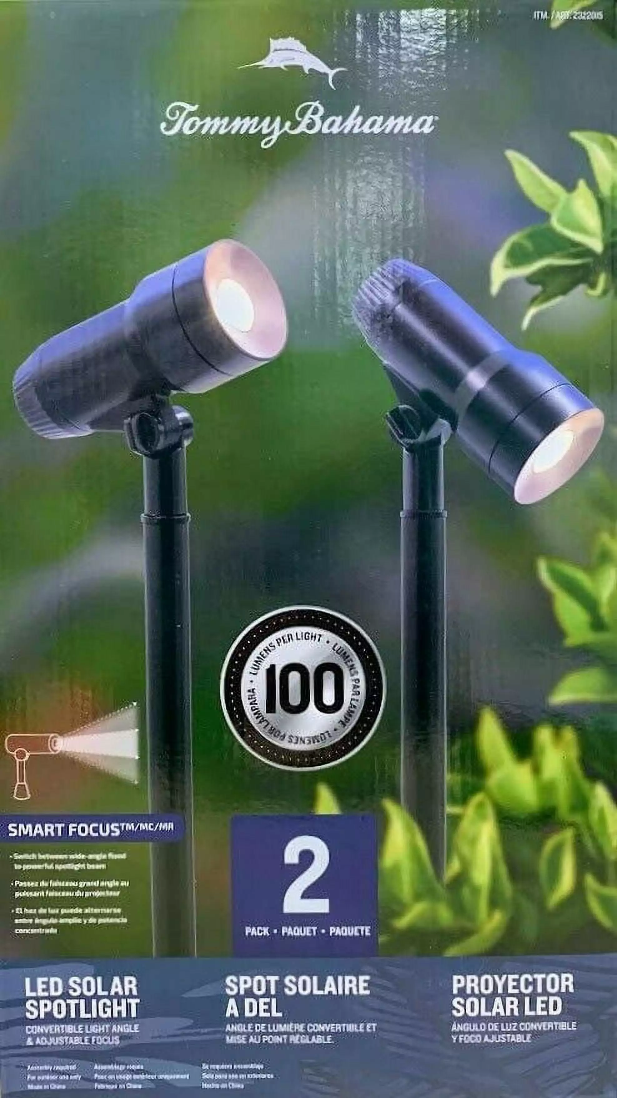 Tommy Bahama Intelligent Focus LED Solar Spotlight Pack of 2. Black