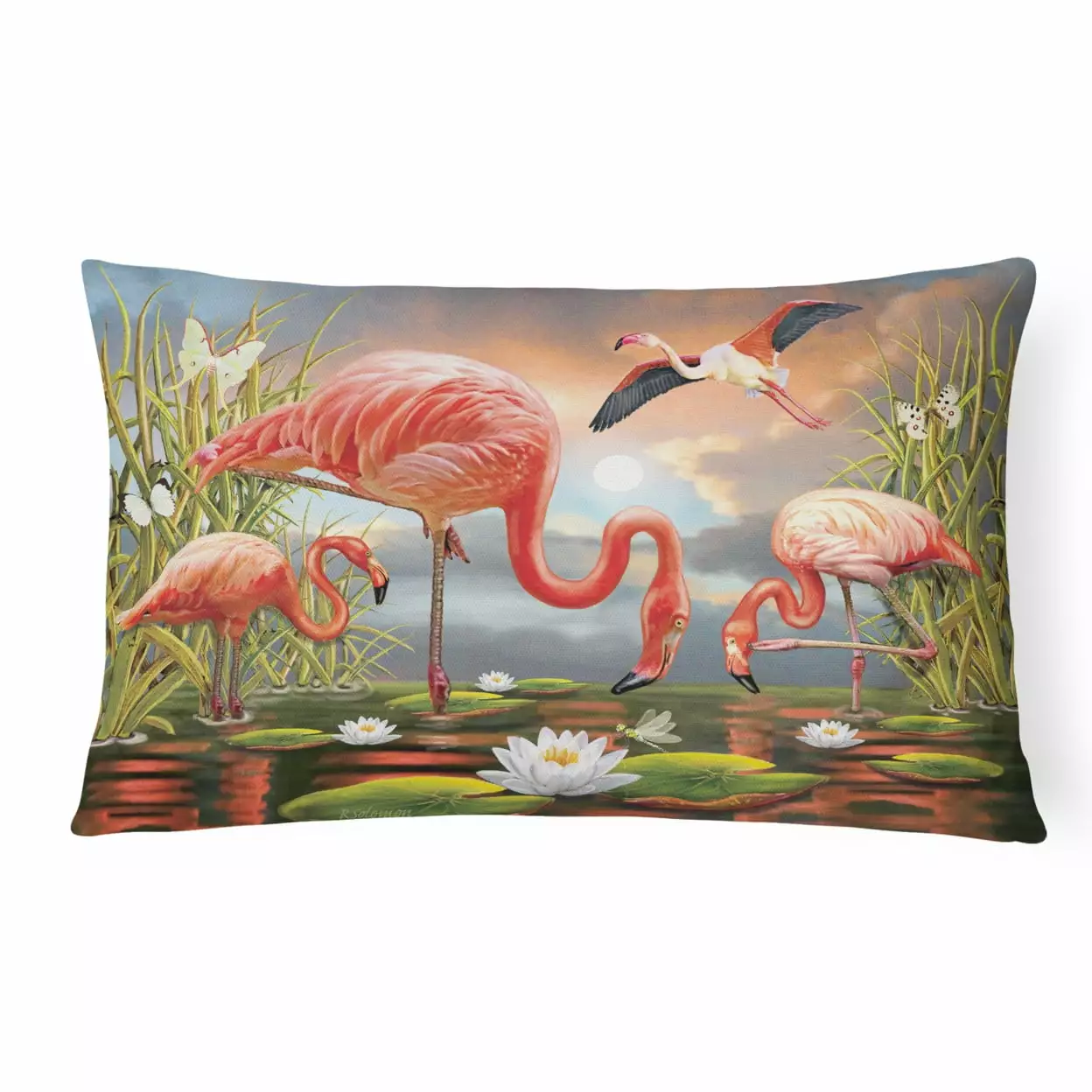 Carolines Treasures PRS4054PW1216 Flamingos Canvas Fabric Decorative Pillow 12H x16W multicolor