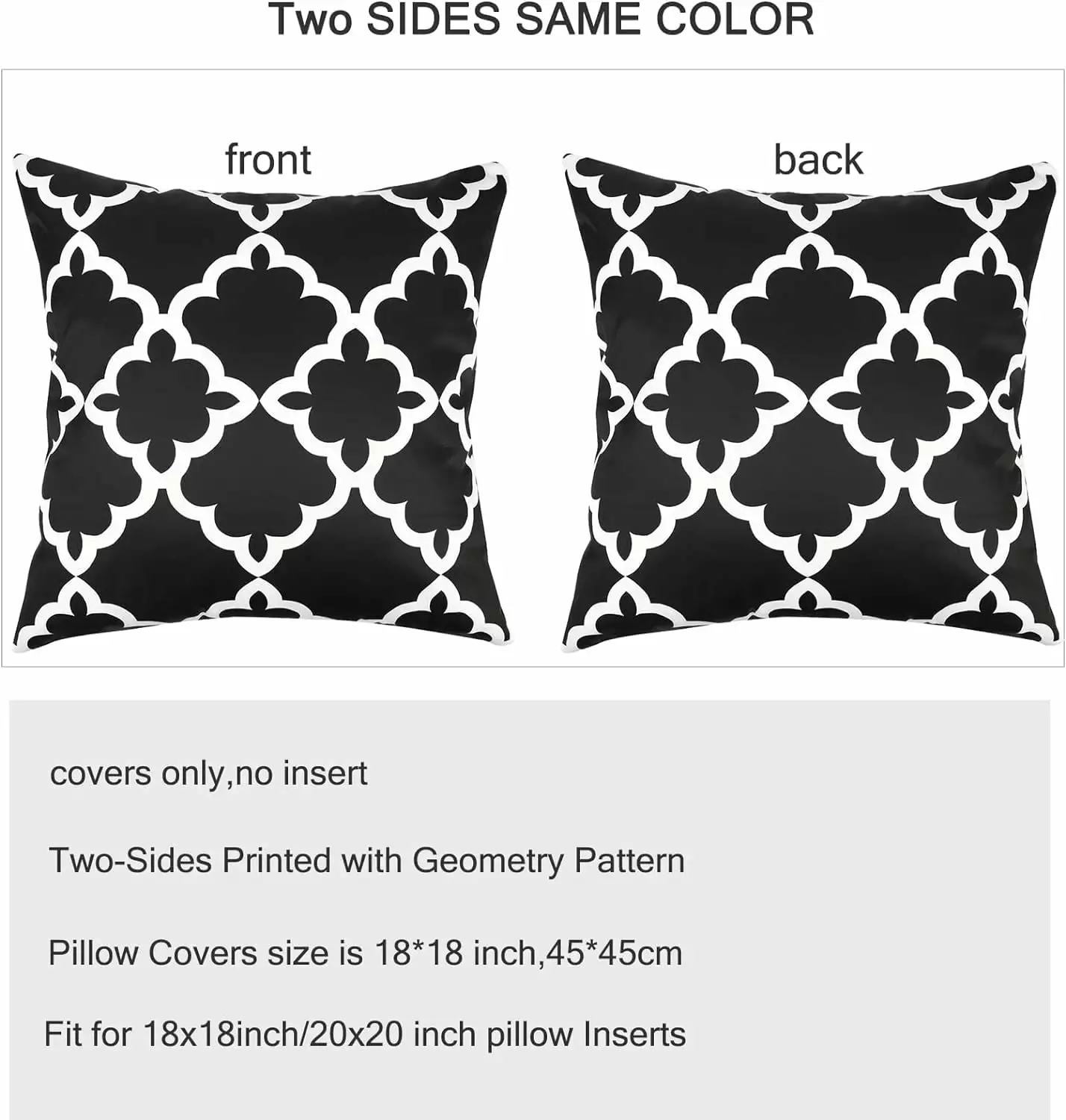 18×18 Inch Black and White Throw Pillow Covers Outdoor Waterproof for Patio Furniture Sunbrella Outside Set of 2