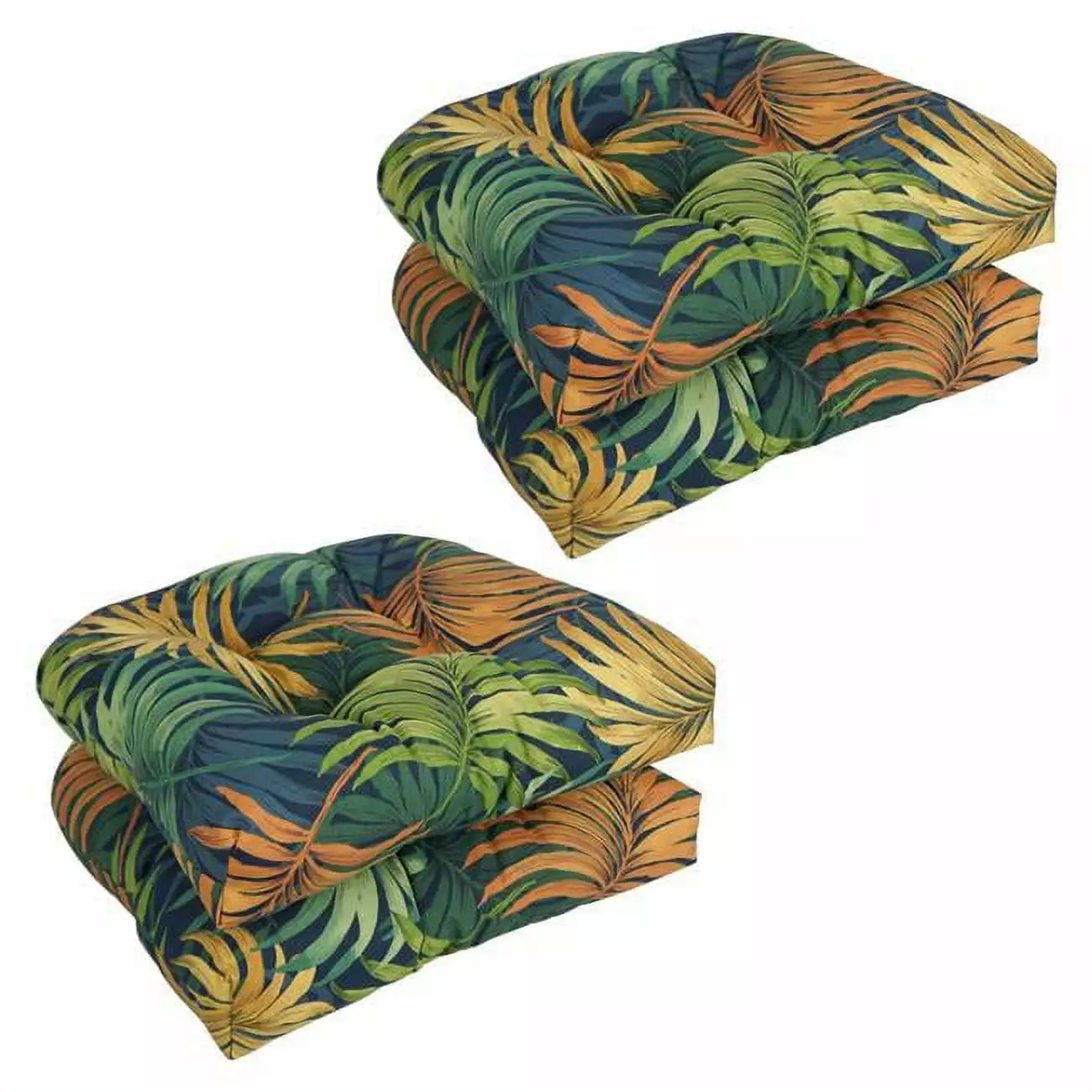 Add a splash of color and style to your home furnishings with these chair cushions. These cushions feature a classic tufted cushion design. UV and weather-resistant spun polyester outdoor fabric.