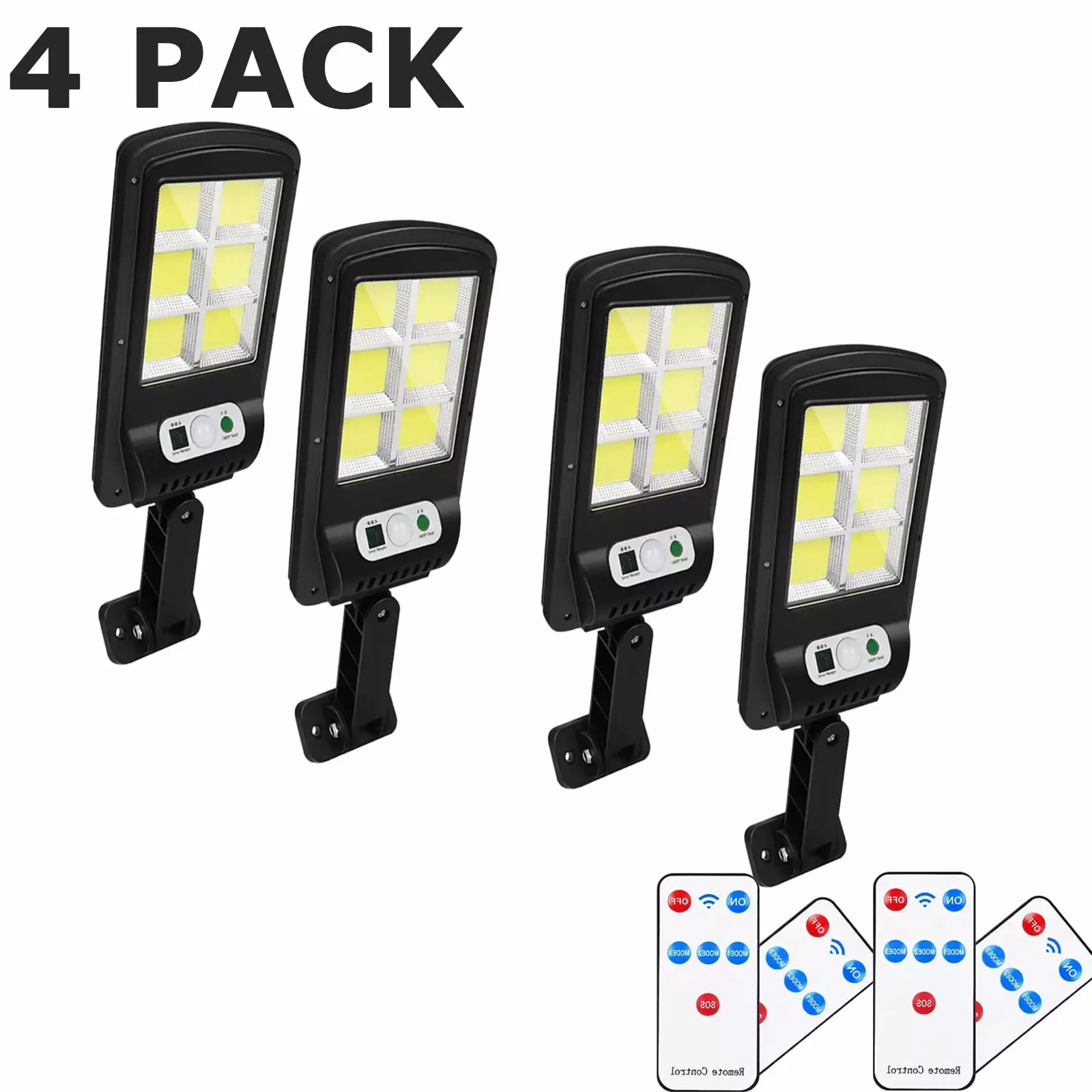 Maustic 4 Pack Outdoor Led Solar Street Lights.120 LED Remote Control Solar Parking Lights Ip65 Motion Sensor Solar Security Wall Light with 3 Modes