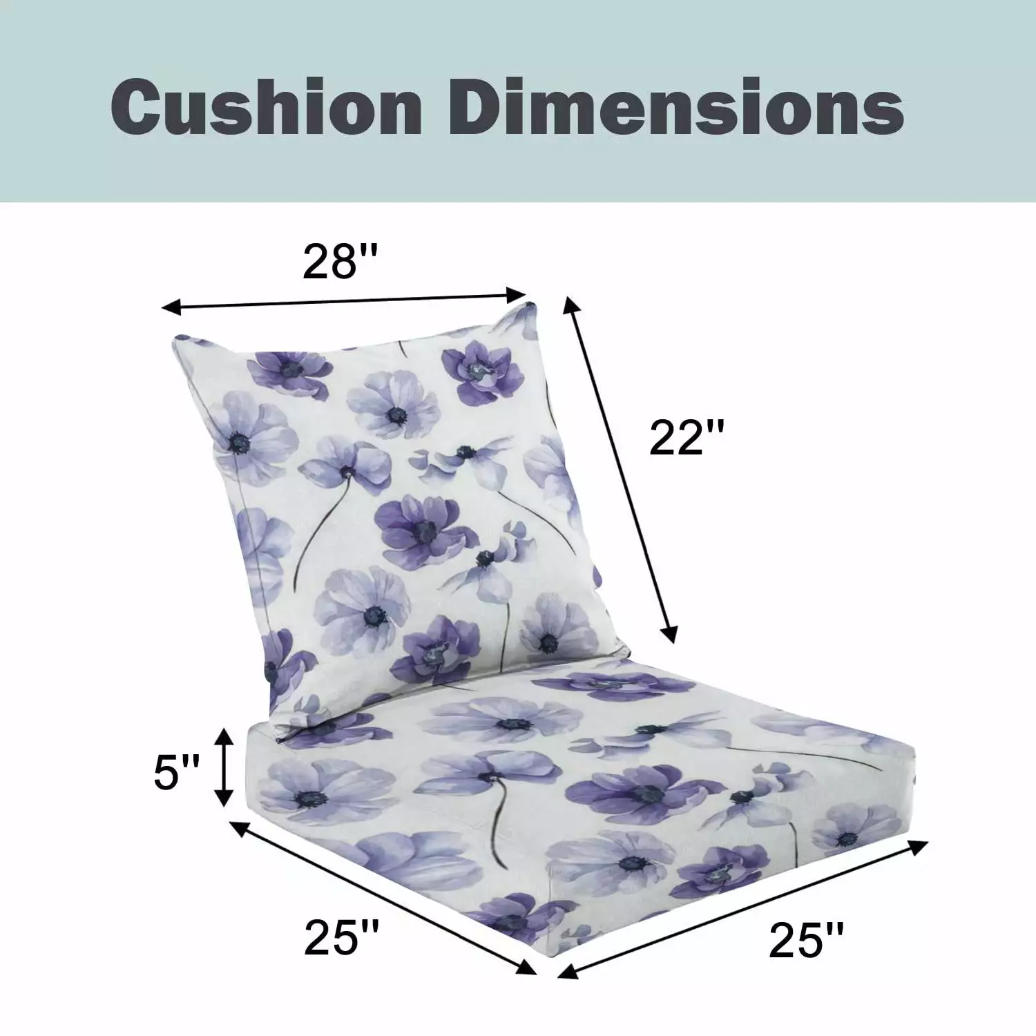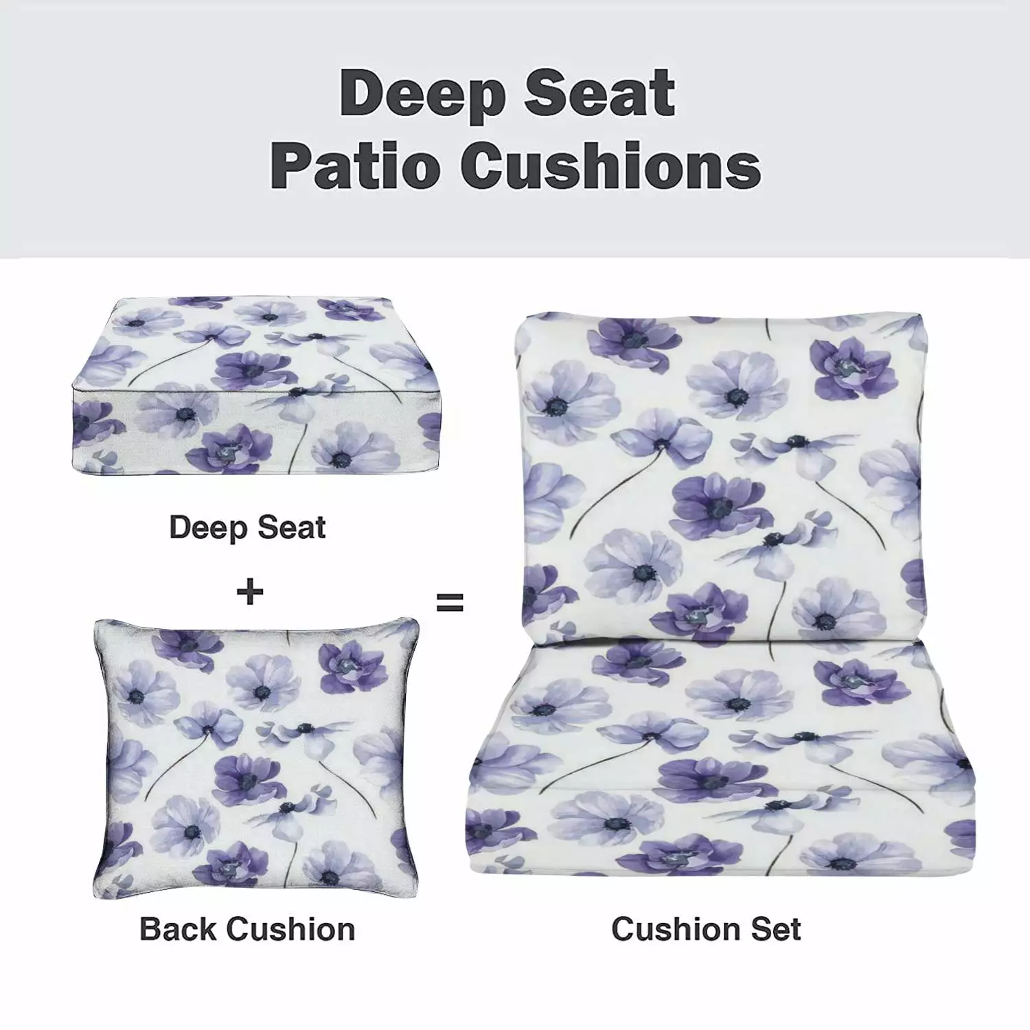2-Piece Deep Seating Cushion Set Seamless very peri flowers watercolor floral composition isolated Outdoor Chair Solid Rectangle Patio Cushion Set