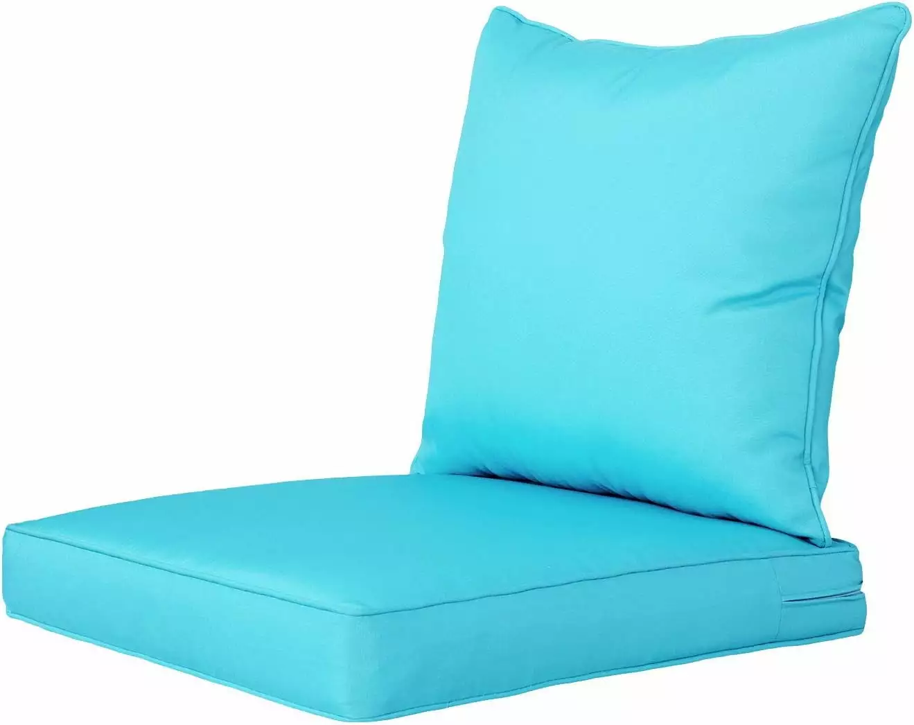 This seat/cushion set contains a seat cushion and a back cushion. the seat cushion size is 25"W x 25"L x 5"H/64x64x10cm and the back cushion size is 28"W x 22"H/70x56cm. They fit indoor/outdoor suitable size furniture; such as loveseat. dining chair. sofa. rocking chair. wooden patio chair. talking chair. glider. etc. The seat and back cushion of the outdoor cushion set has an excellent zipper closure and can be used as a cushion replacement set. If they are too dirty. you can wash them in the washing machine. Thick seat cushion is made from a whole piece of 3-layered interior high bounce foam. It could retain the shape and not easy to deform or collapse. extend service life. The back cushions is made from soft polyfiber fill. It’s filled over-stuffed. quick bounce back sturdy back cushion could support your back well when lean on. Be sure to confirm the relevant size before purchasing to avoid the situation that the size does not fit.