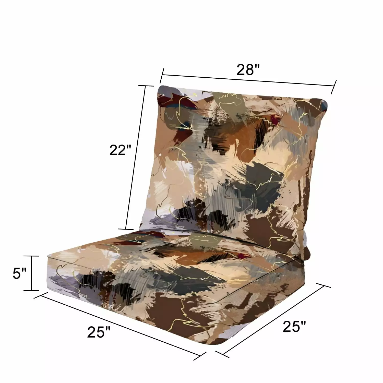 - Seat Cushion Dimensions: 25L x 25W x 5H.Back cushion dimensions: 28 L x 22 W. Premium seat cushion with durable foam core adds extra support and comfort.