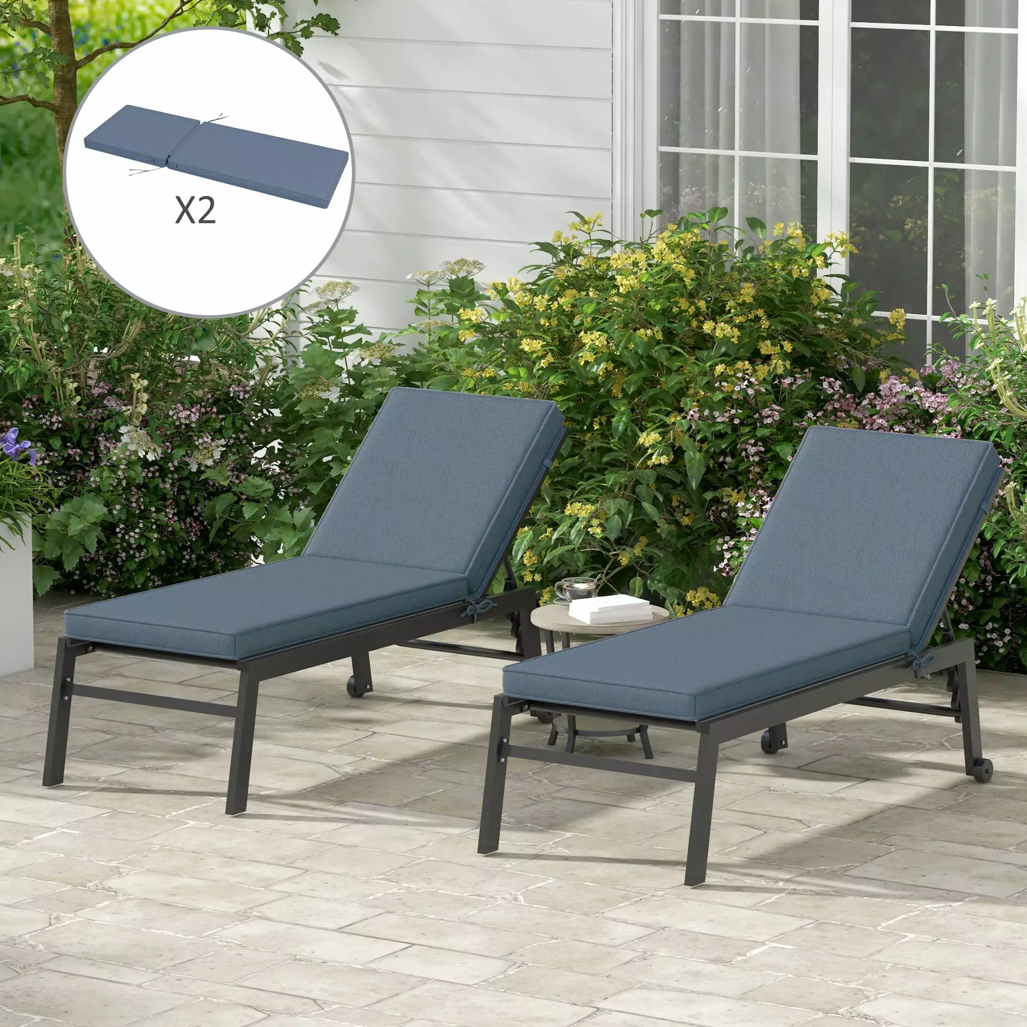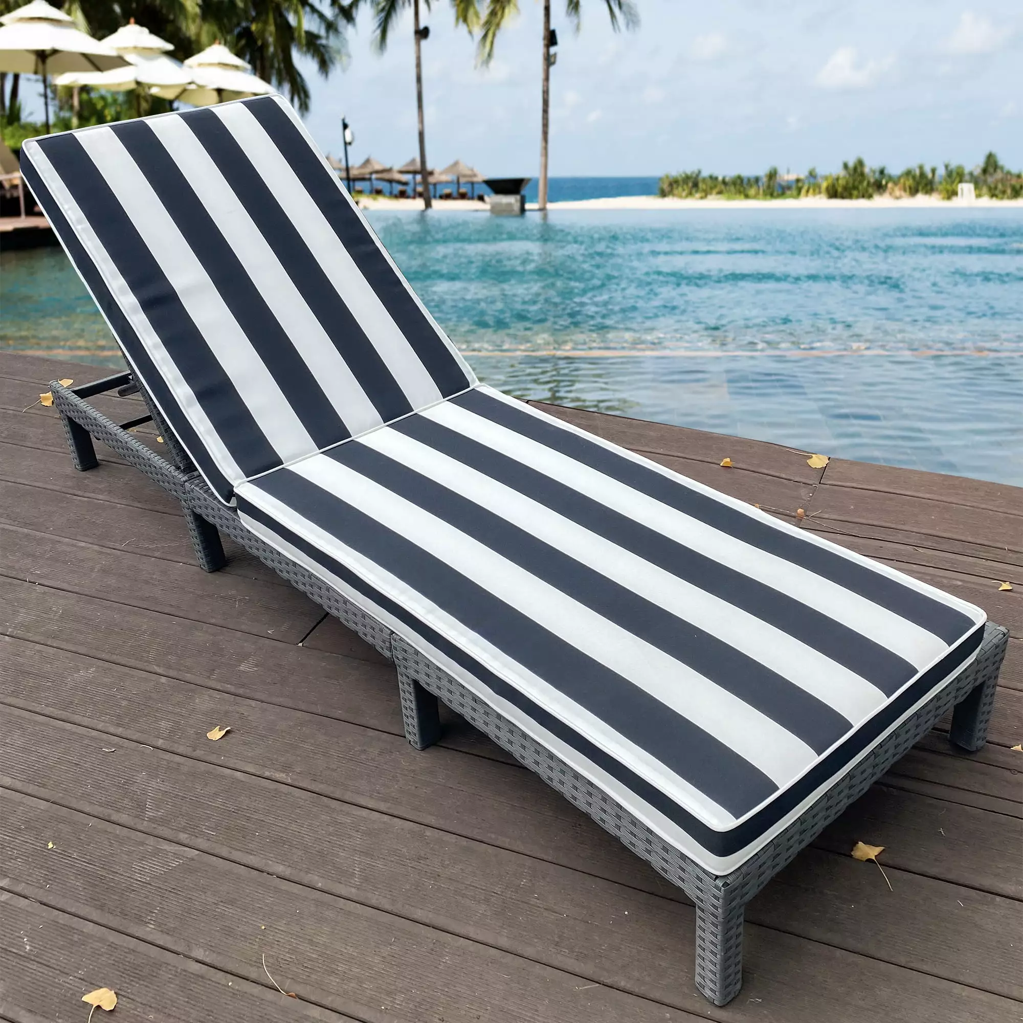 2 Pieces Set Outdoor Patio Chaise Lounge Chair Replacement Cushions Chair Pads.Black White Striped