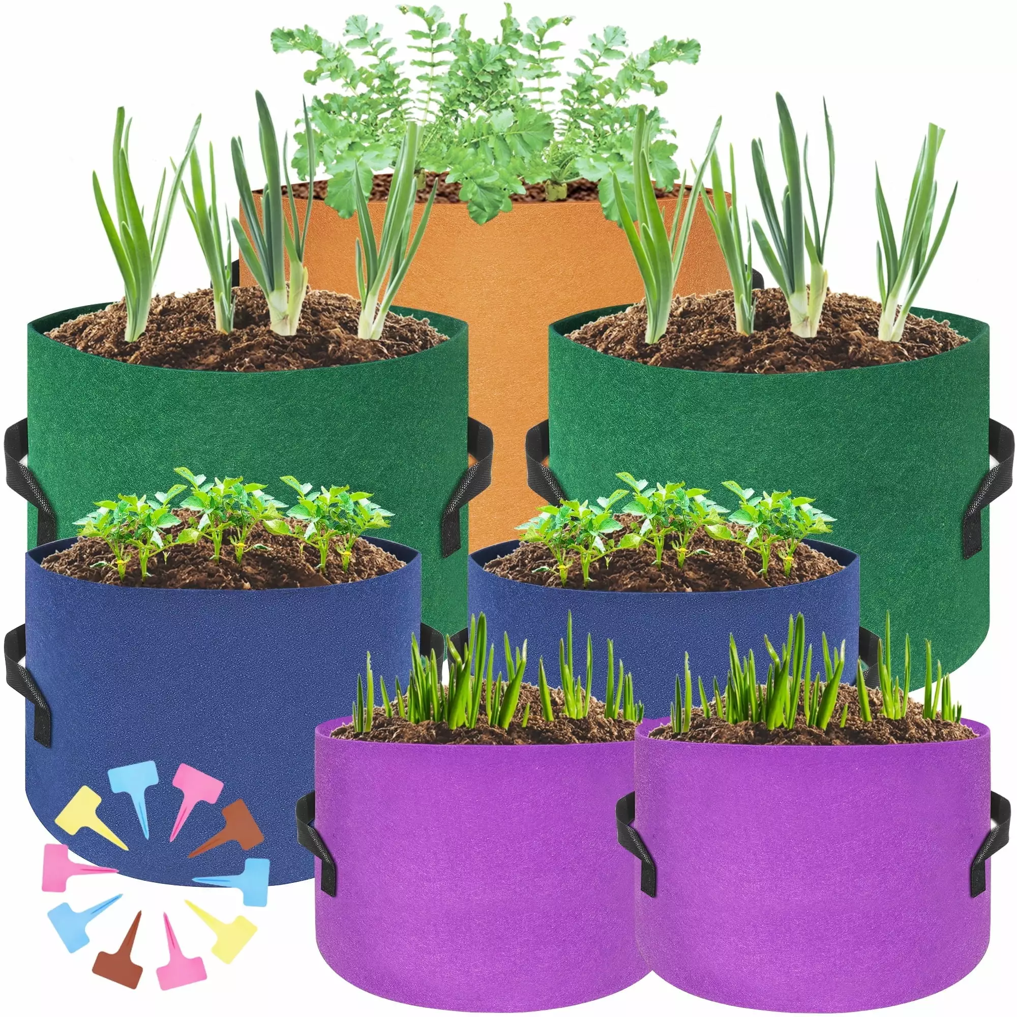 7-Pack Colorful Plant Grow Bags. Thickest Felt Fabric Pots 10 Gallon 7 Gallon 5 Gallon 3 Gallon. Garden Labels Included Potato Grow Bags
