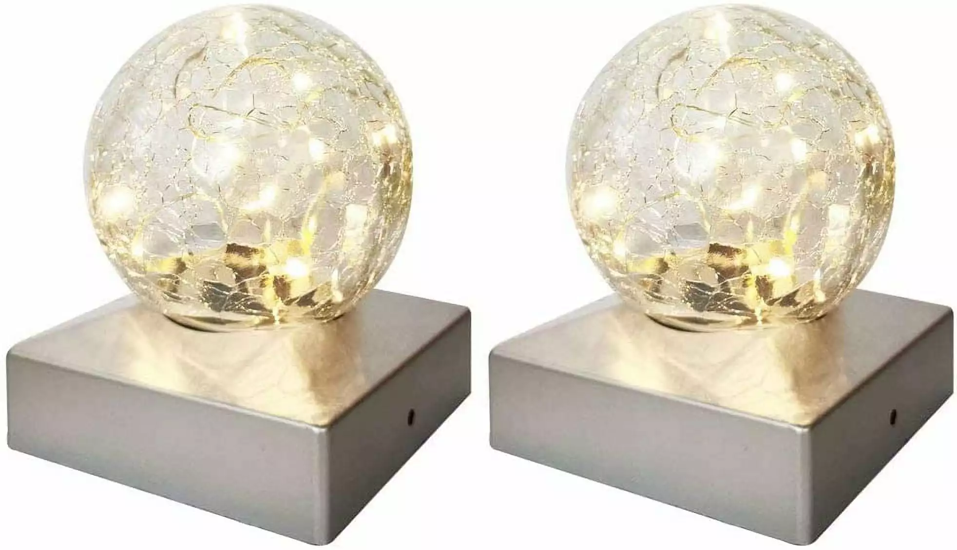 Crackle glass design with metallic silver plastic base. These post caps 4×4 are great choice to add deck lighting without electricity and wire.