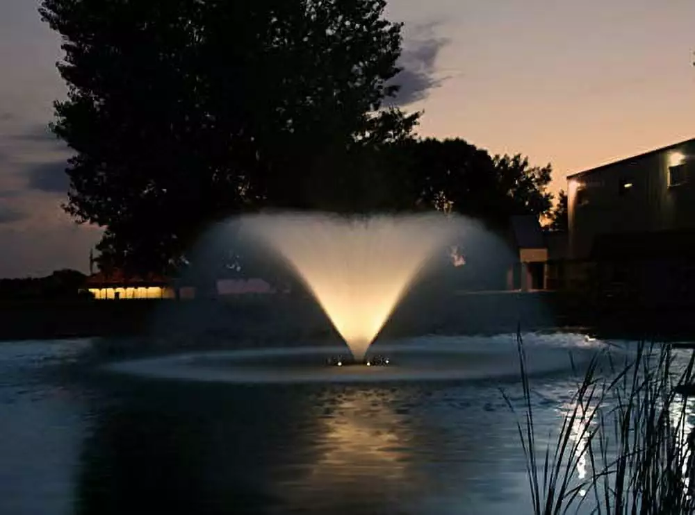 - LED Lighting Kits: This pond and lake fountains includes multicolor LED lights (LED3C11) with three easy-to-attach fixtures. Choose from a stunning range of colors. including white. warm white. red. orange. yellow. blue. cyan. magenta. and green. to create the perfect nighttime ambiance for your pond. LED Light kit is ideal for event venues performing flawlessly for hours of enjoyment. especially after the sun goes down.