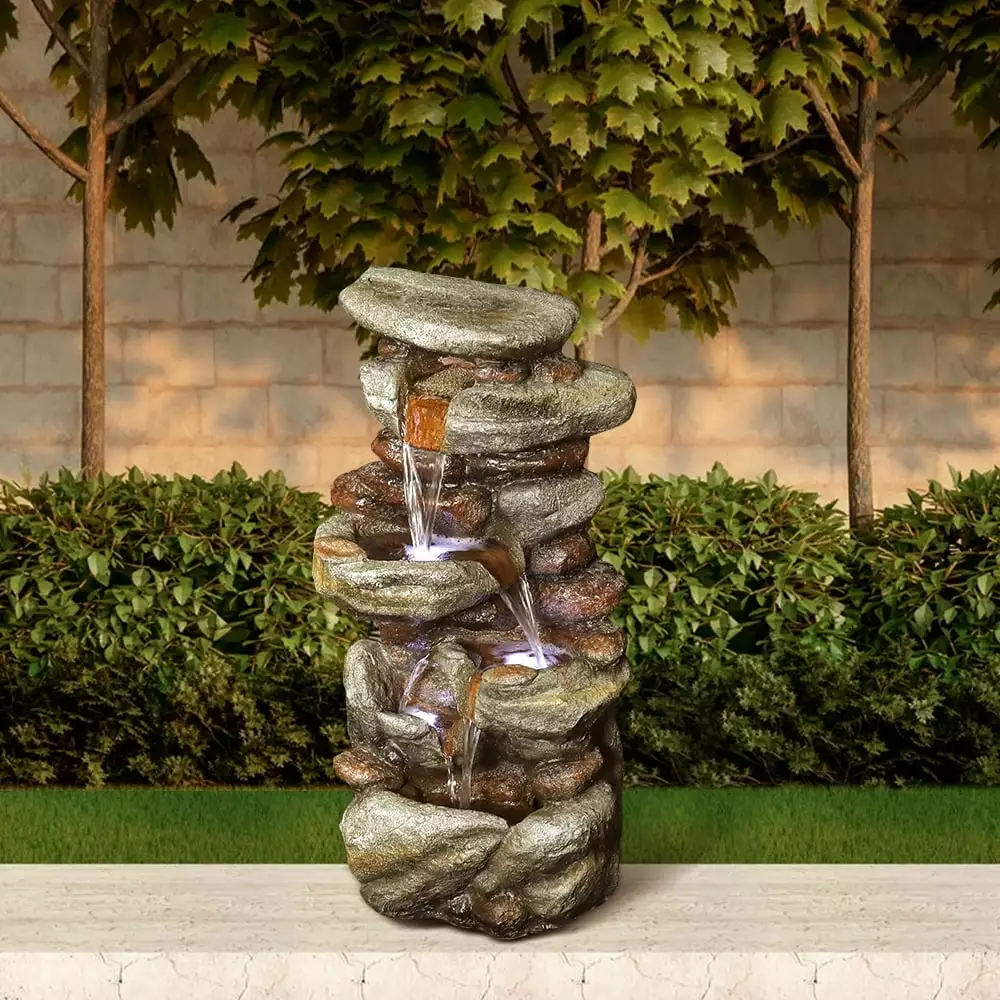 - The rockery water fountain is constructed using sturdy and long-lasting resin material. maintaining its original appearance over time.