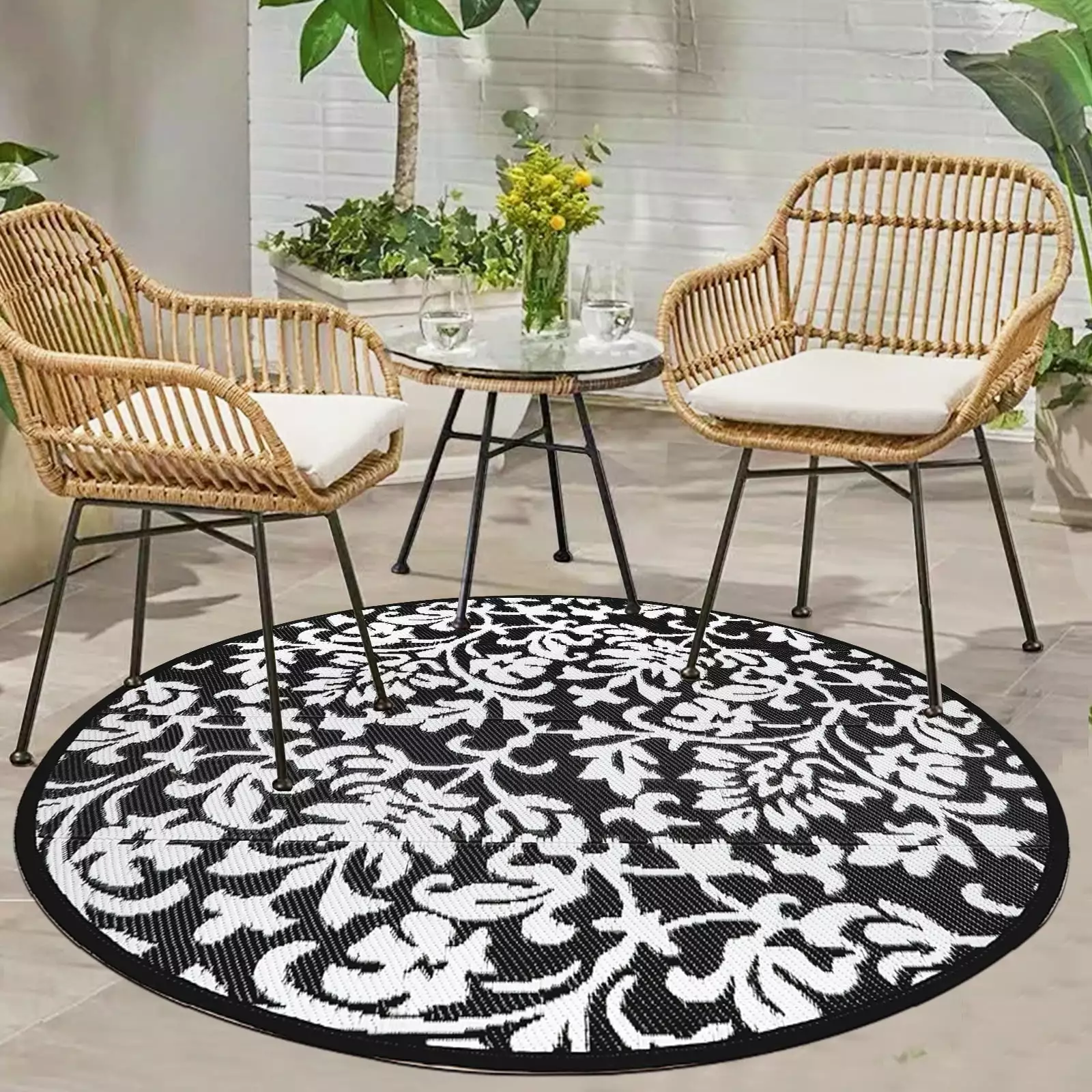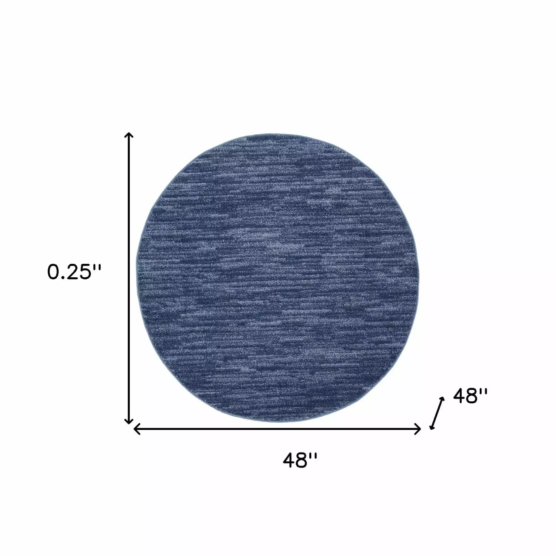Add some artistry to your room with this 4′ x 4′ navy blue round non skid indoor outdoor area rug. This geometric round shaped rug features a solid color that combines hue and shape for a great look. Solid colors are versatile and will blend with any existing decor style. This superior Turkish rug represents the highest quality and is built to last. Area Rugs help to give warmth and sense of home to your space. 0.25" H x 48" W x 48" DAdd some artistry to your room with this 4′ x 4′ navy blue round non skid indoor outdoor area rug