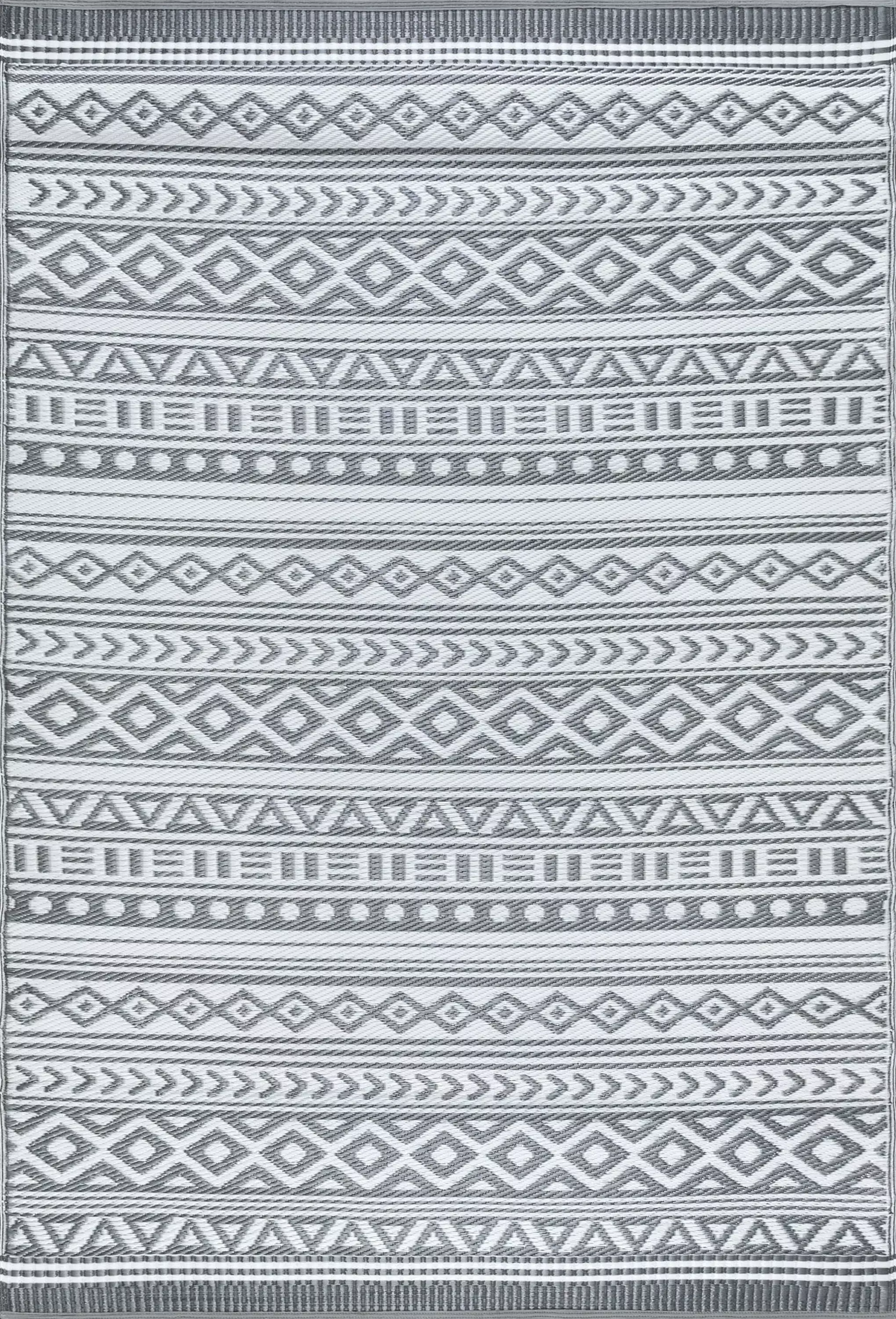 | Features | Machine Made in Turkey. Made with durable and fade resistant Polypropylene. Durable polypropylene backing for high peformance. A beautiful contemporary style with a primary gray shade and white accents. Stain resistant. easy care. and perfect for any indoor or outdoor setting |