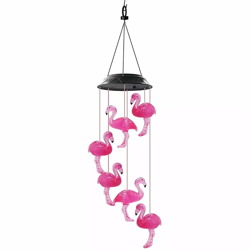 Flamingo Solar Wind Chime Light Waterproof Hanging Wind Bell Light for Home Yard