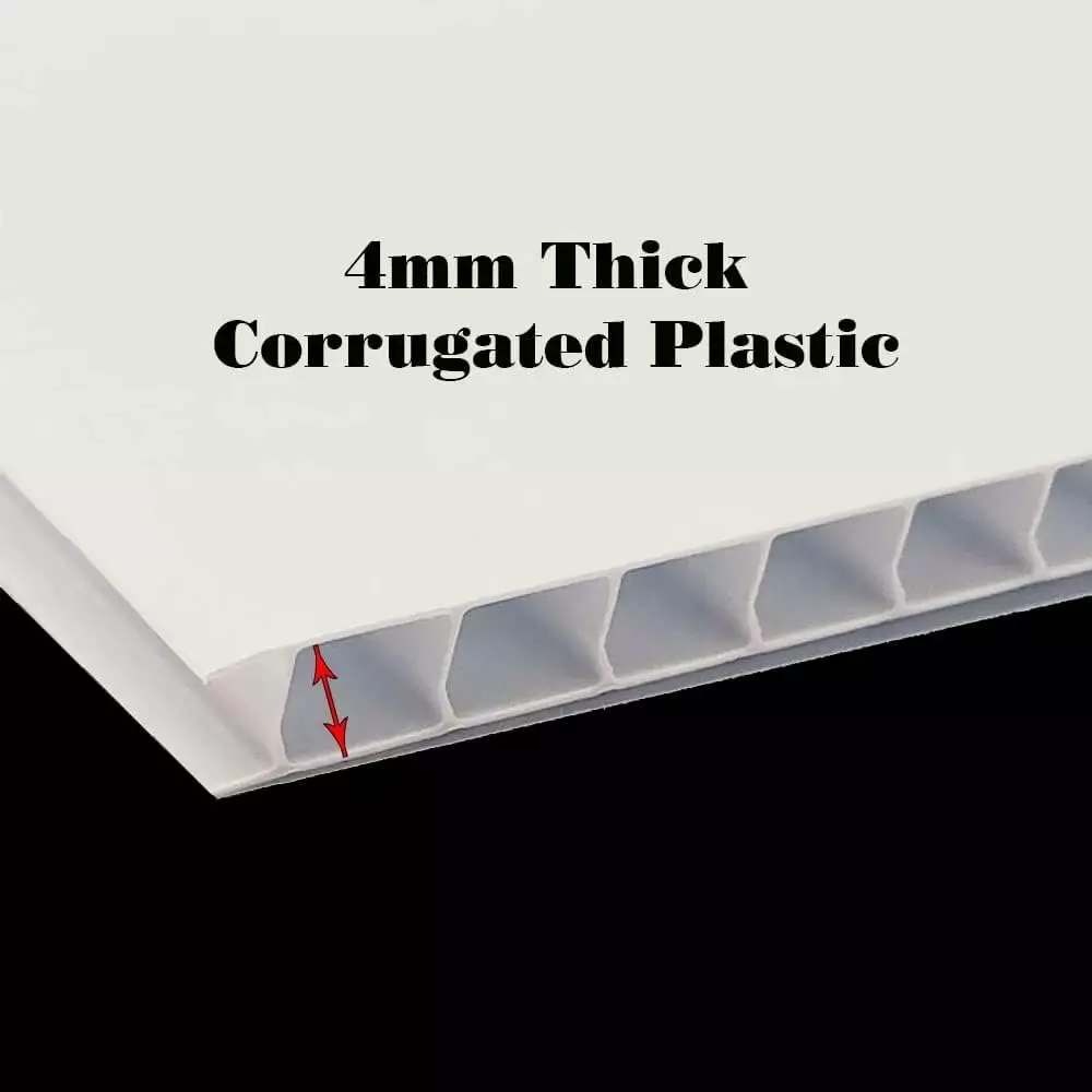 - DURABLE SIGN: Work House Signs manufactures heavy-duty corrugated plastic signs that are waterproof and can withstand rain. snow. and sleet. Each corrugated plastic yard sign is 4mm thick making it tough and reliable.
