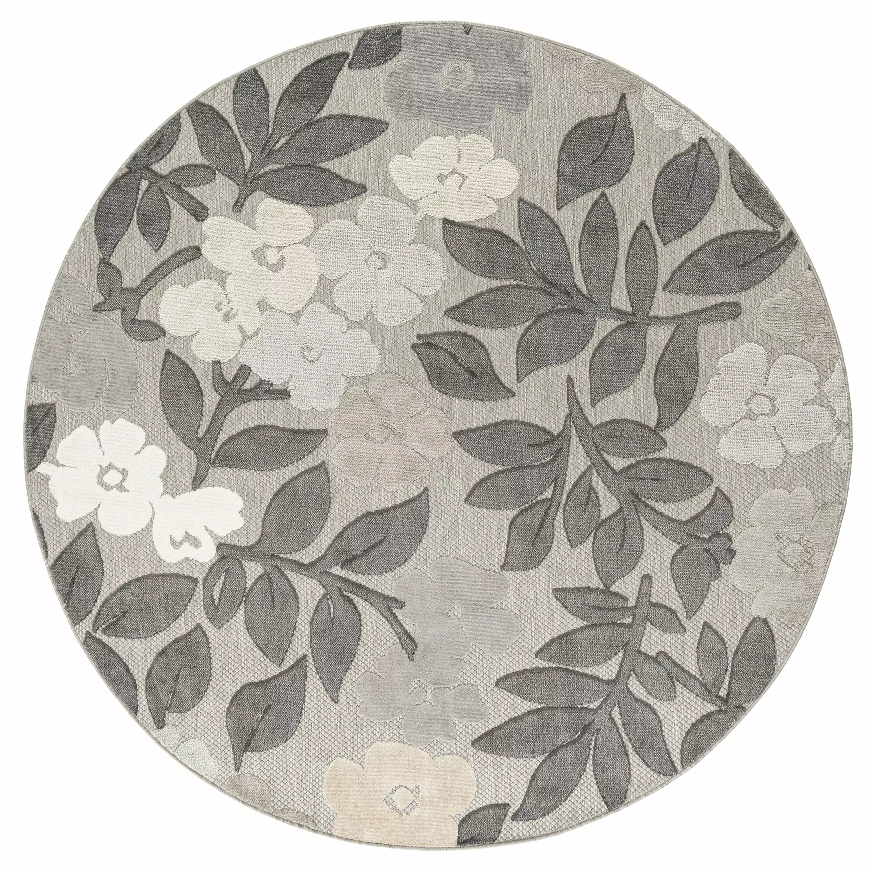 The high-low pile combined with easy-care endurance of this colorful waterproof outdoor rug creates a relaxing space for your indoor or outdoor area. The modern floral hibiscus design in an intertwining pattern is sure to liven your oasis. Modern Area Rug (5’3” Round) Floral Beige. Gray Indoor Outdoor Round Easy to Clean. Good fit for entryway. foyer. entrance. doorway. Vacuum or shake to remove debris. Spot clean or clean outside with water; spray with garden hose to rinse. Allow to dry thoroughly.