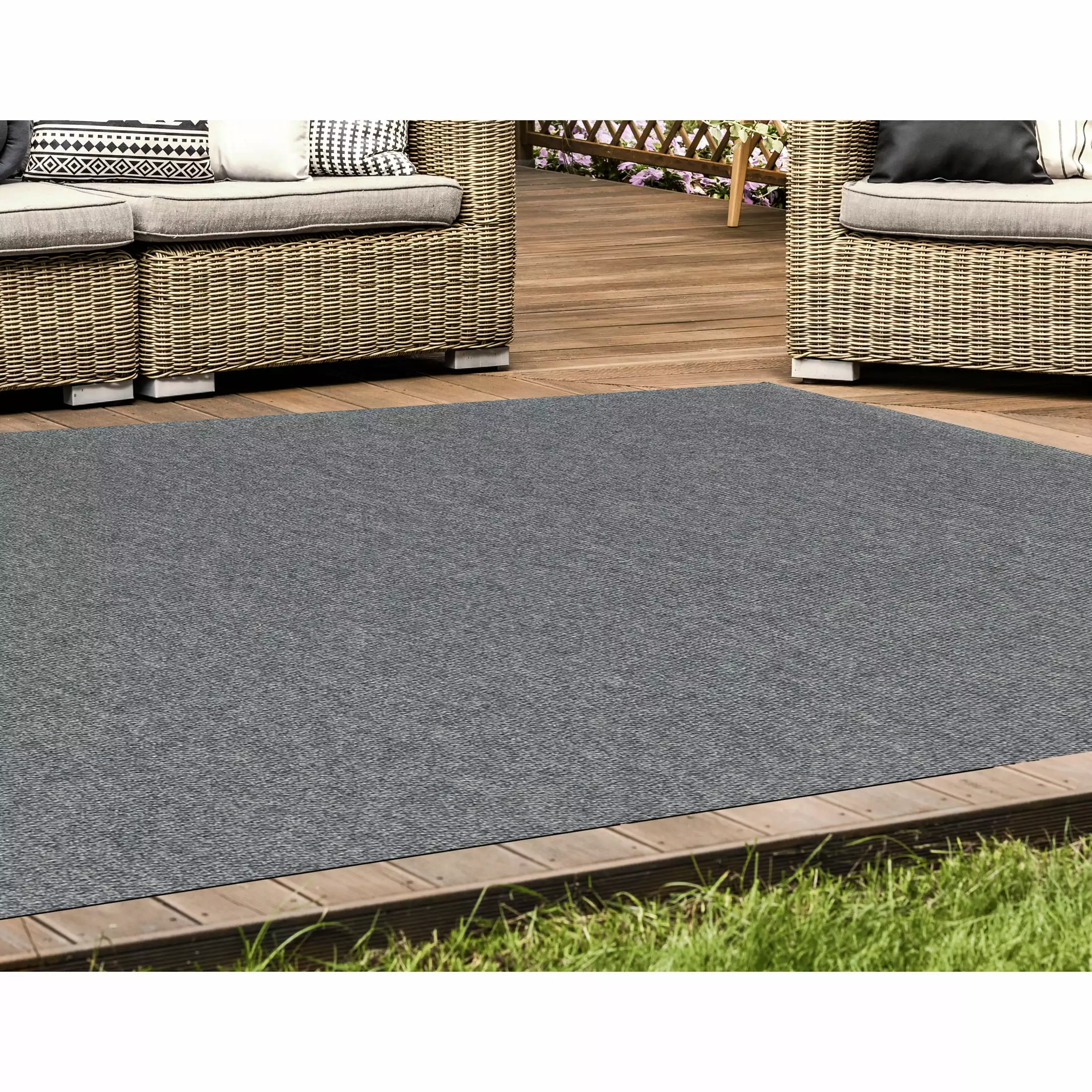 Bring inviting comfort to any space and every season with Indoor/Outdoor Area Rugs from Foss. With attractive colors and incredibly resilient construction. these eco-friendly. high-performance rugs are engineered to deliver year-round comfort. lasting beauty. and remarkable durability indoors and out to help you complete any living space indoors or out. 100% PET fiber construction is solution-dyed so carpet color is locked in while stains are locked out. These rugs are unbound so you can cut them to fit any application with no fraying. Perfect for basements. mud rooms. pet areas. bonus rooms. balconies. patios. poolsides. sun rooms. porches. outdoor kitchens and more.