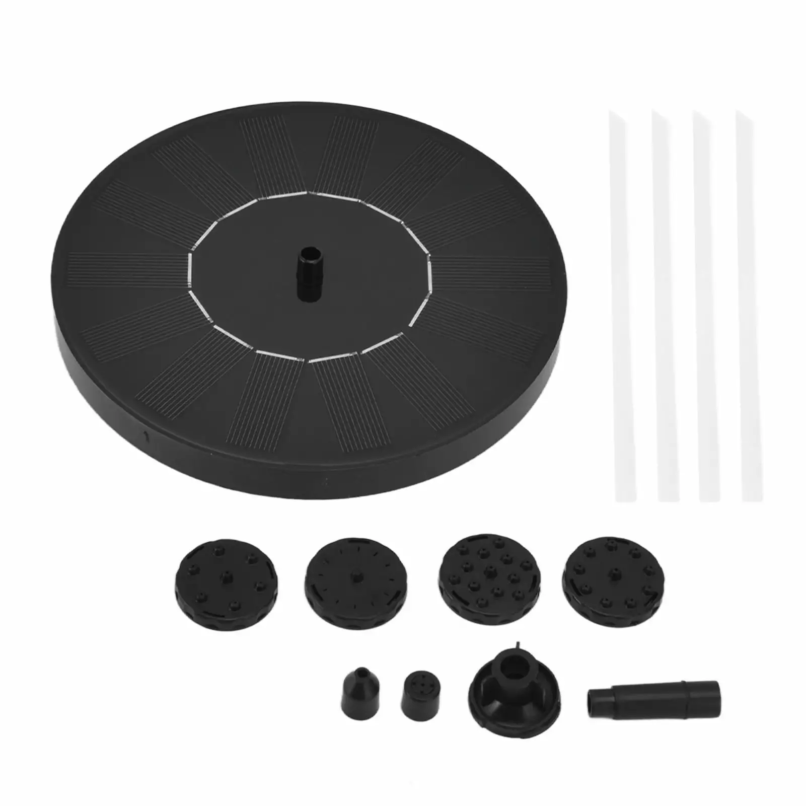 1?yMultiple spray heads are suitable for different water modes and change the spray heads to obtain different water effects. 2?yEasy to install and use. when the solar panel receives enough sunlight. the pump will start in 3 seconds. 3?yConvenient for cleaning and easy to reconfigure. no plug required. small size and compact. 4?yWaterproof with lotus leaf. can float on water. simulation shape. beautiful and easy to use. 5?yPlace the solar fountain under direct sunlight for the best results. energy saving and environmental protection.7V 2.5W Solar Fountain Garden Pond Landscape Floating Fountain Outdoor Decoration Ornament