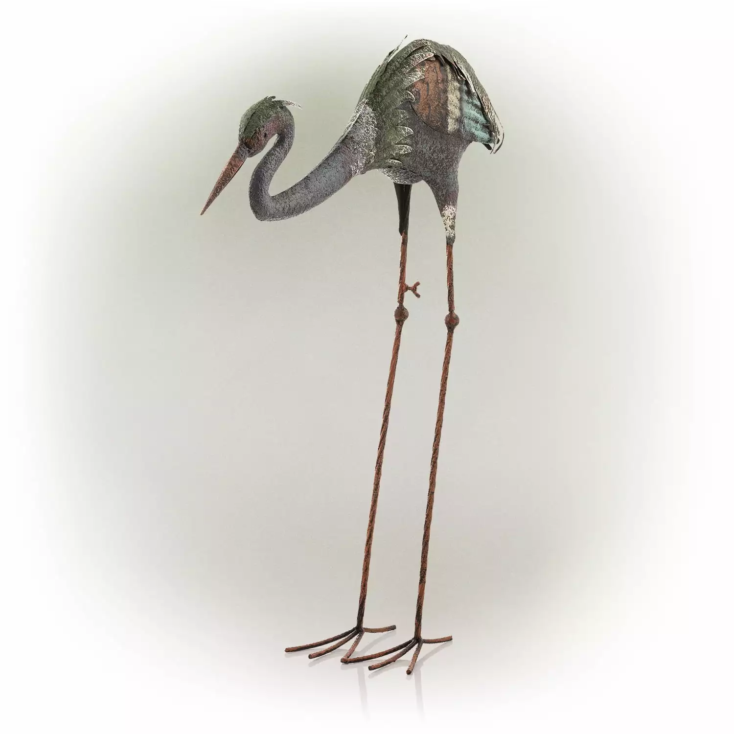 Alpine Corporation 26 x 7 x 30 Rustic Metal Crane Garden Statue. Multicolor