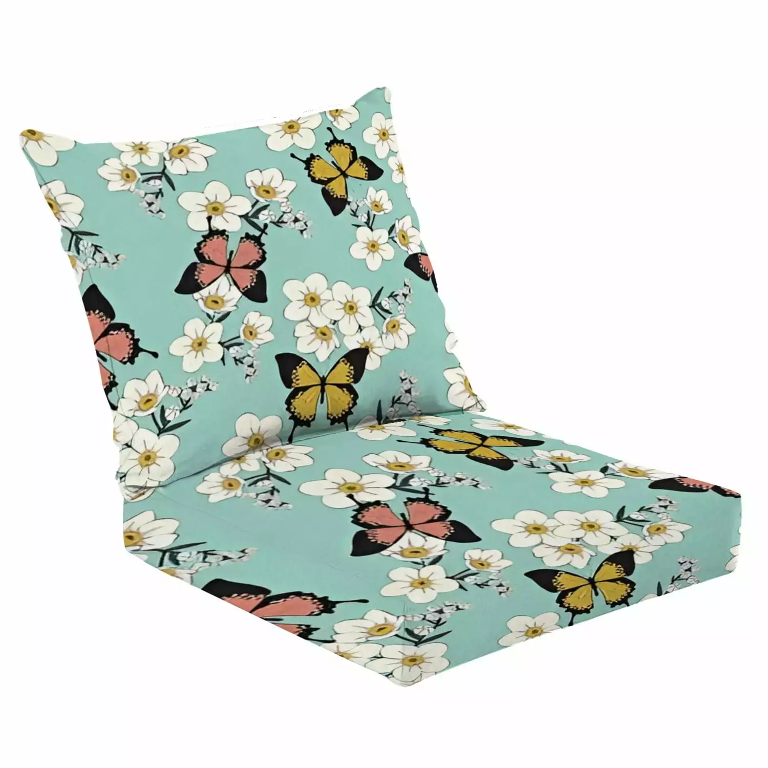 2 Piece Indoor/Outdoor Cushion Set Vintage cute romantic seamless wild flowers pattern butterflies All Casual Conversation Cushions & Lounge Relaxation Pillows for Patio Dining Room Office Seating