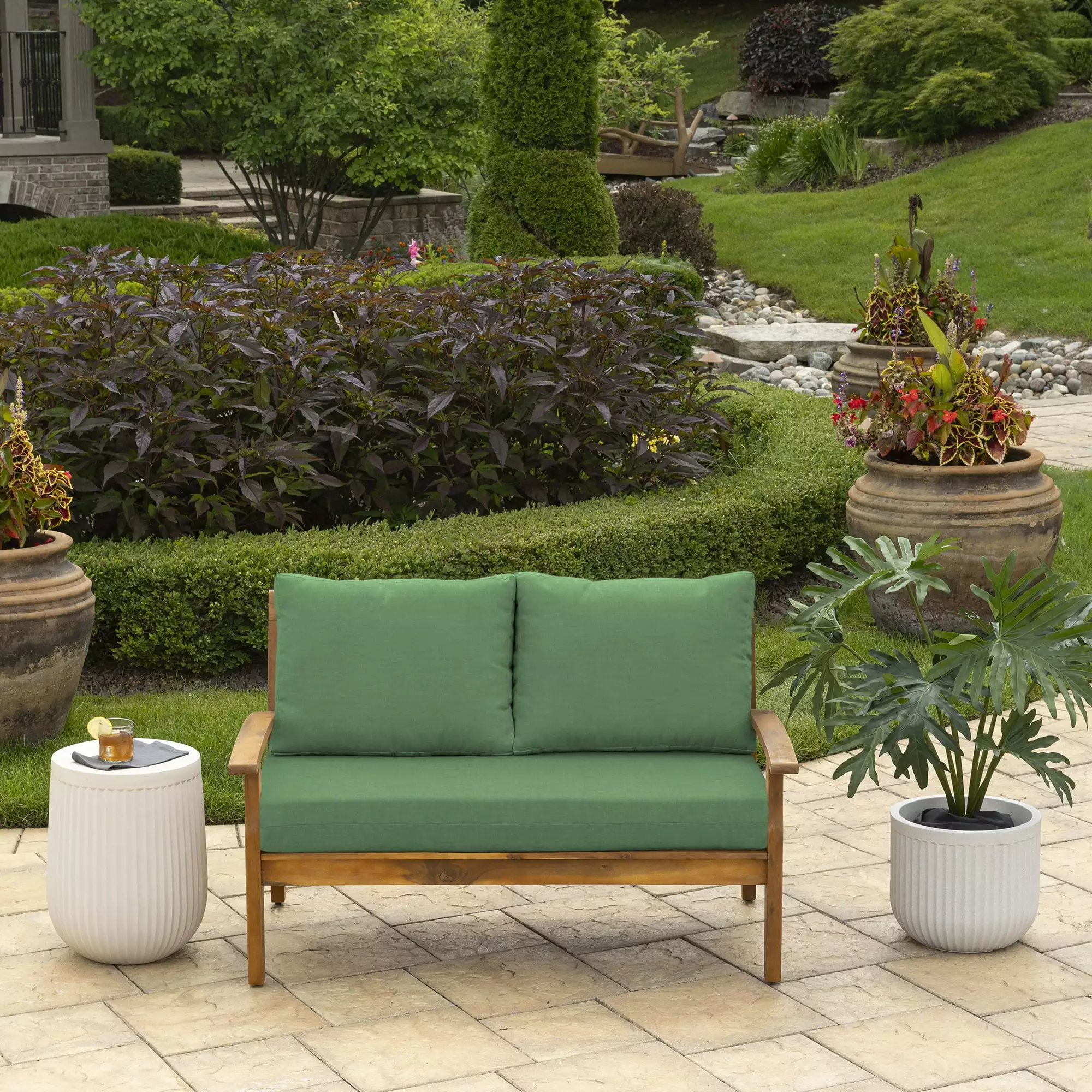 Arden Varietys Outdoor Loveseat Cushion Set. 48 x 24. Water repellent. Fade Resistant. Cushion Set for Couch. Bench. and Swing 48 x 24. Moss Green Leala