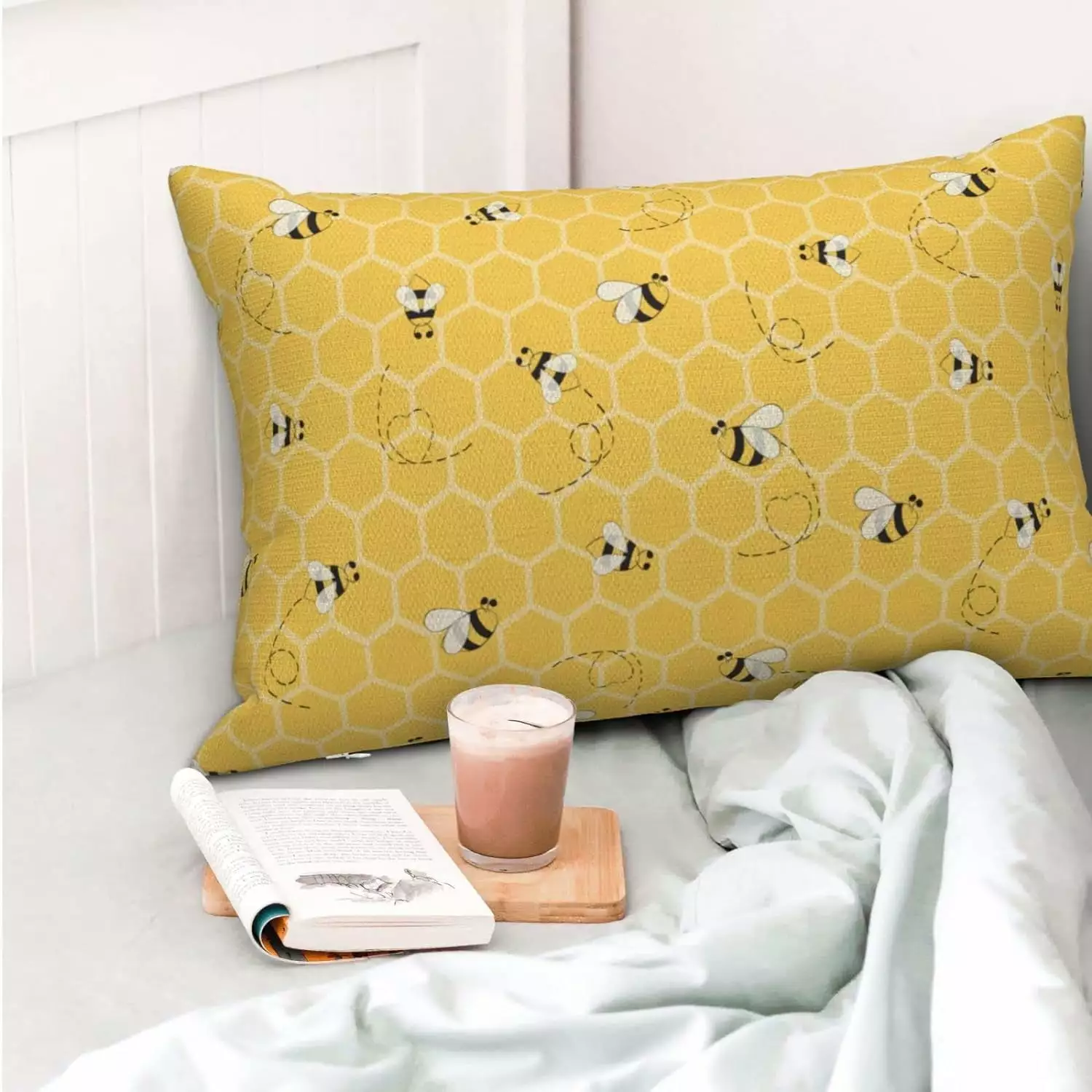 Invisible zipper design looks elegant. pillow/filler can be easily tucked into this pillow covers. Cute bee and honeycomb pattern design.