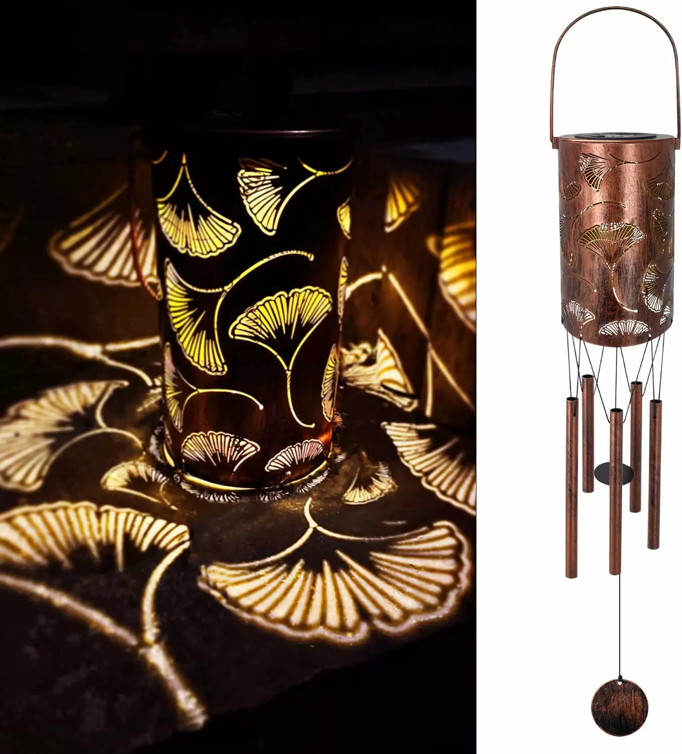 30 Solar Wind Chimes Hanging Lights Outdoor Led Lantern Metal Wind Chimes for Outside One-of-a-kind Garden Hanging Solar Decorative as Gift for Mom Women Grandma (Bronze)