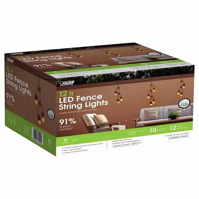 Feit Electric 12 ft. LED String Lights. Clear - 10 lights