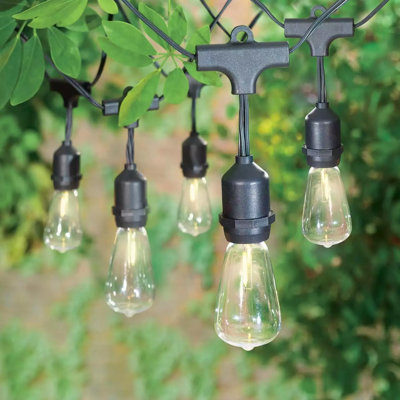 The Better Homes & Gardens 15-count LED Edison Bulb String Lights will give your home or yard a beautiful vintage look. These vintage-style lights can be used to decorate your back yard. back patio or even hang them on the pergola to give the perfect soft glow. They can also be used to decorate for a wedding. birthday party. or retirement party. These lights offer the perfect ambiance with just the right amount of light. The set is composed of 15 Warm White LED bulbs on black wire and has a total length of 21.5 feet. Ideal for indoor and outdoor use. end-to-end connectors allow you to connect up to 16 sets of this exact same light for a total lighted length of 320 feet to create your desired lighting effect. The Better Homes & Gardens 15-Count LED Edison Bulb String Lights are sure to ambiance and elegance to your evening.