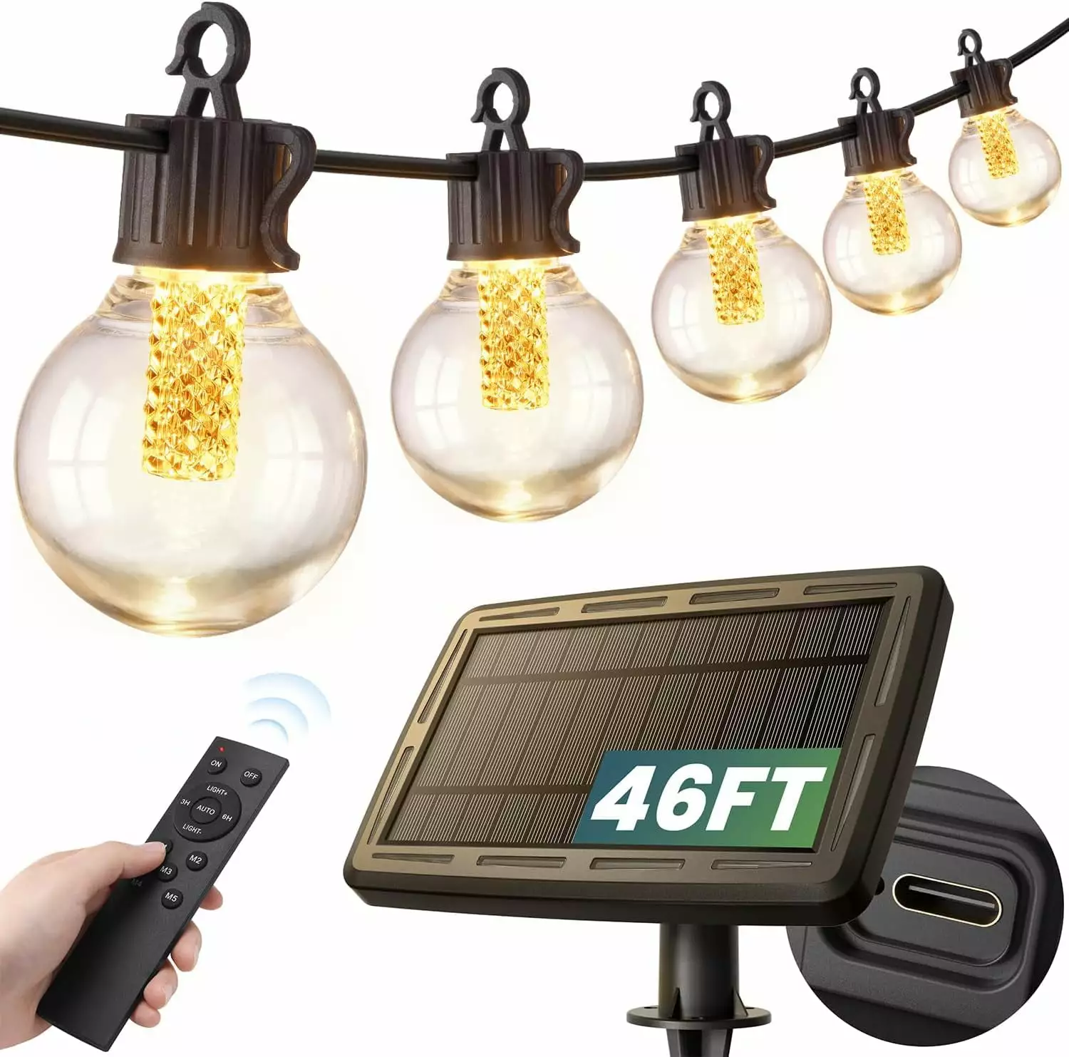 HomaVida 46FT Solar Outdoor String Lights with Remote for Inside Patio Garden Gazebo Bistro Cafe Backyard
