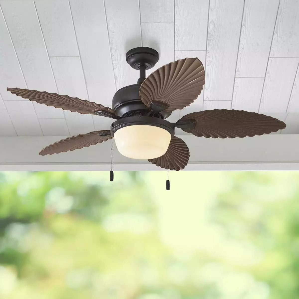 Better Homes & Gardens 52 Bronze Ceiling Fan. 5 Palm Leaf Blades. LED Light. Indoor/ Outdoor