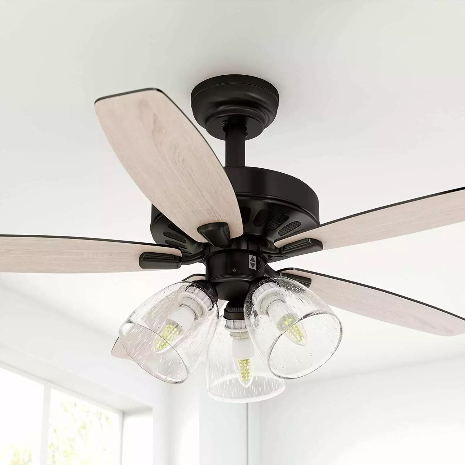 - Dual-Finish Blades: This fan comes with a different finish on each side of the blades; Choose between Ebony and Dark Maple to best fit your space