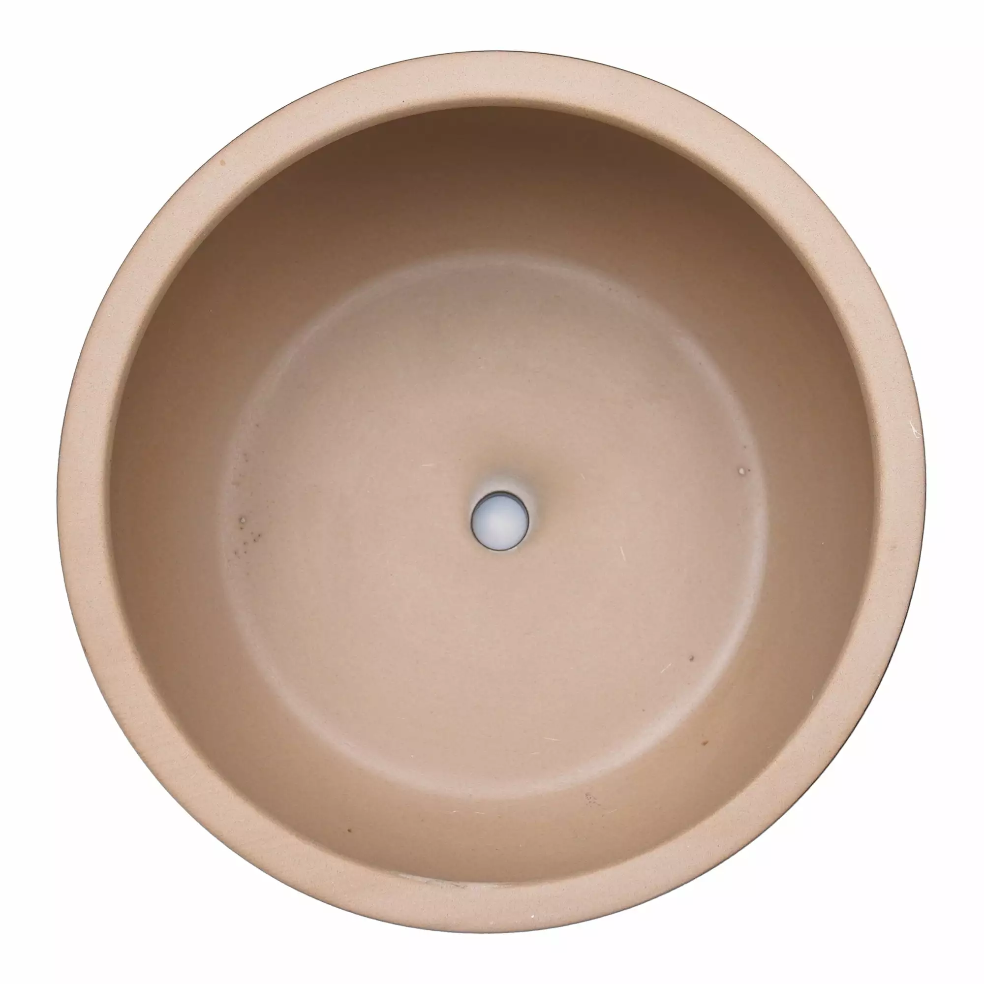 - Round planter with a hole with a removable plug at the bottom
