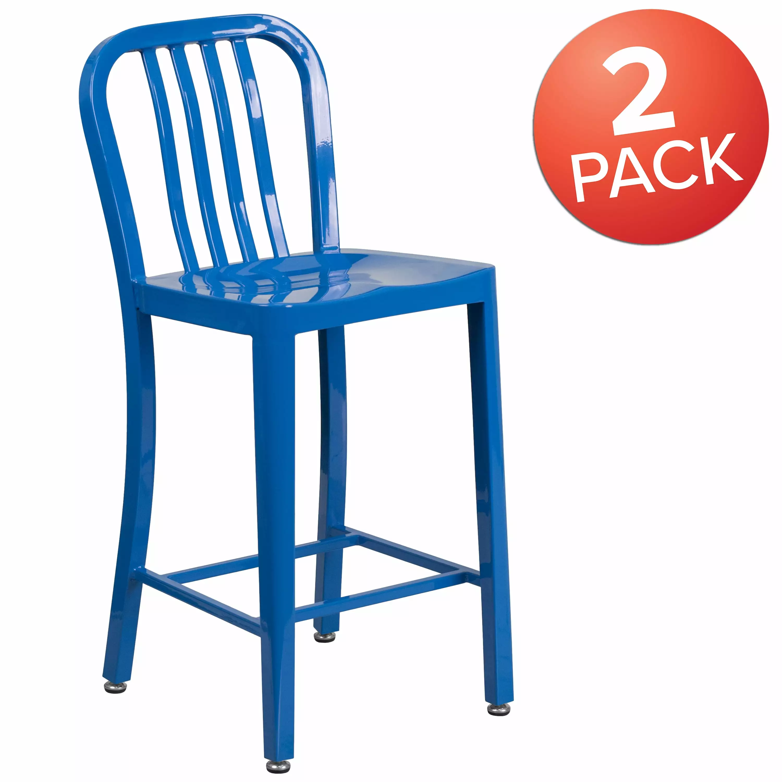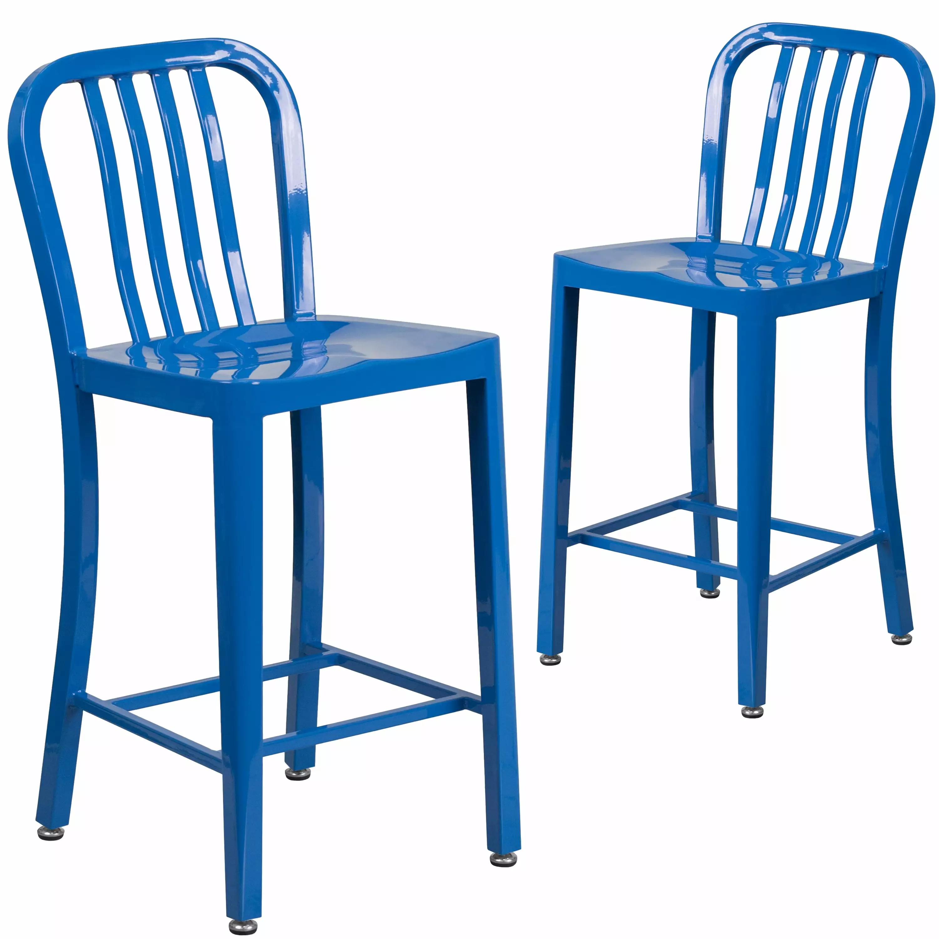 Pair these kitchen stools with our matching blue metal chairs and bar stools to have seating at your dining table. kitchen island and home bar. Coordinate the seating in your restaurant with the same style of seating at your bar and restaurant tables. These counter height chairs can be used year-round outside. for longevity protect the frame from long periods of wet weather.