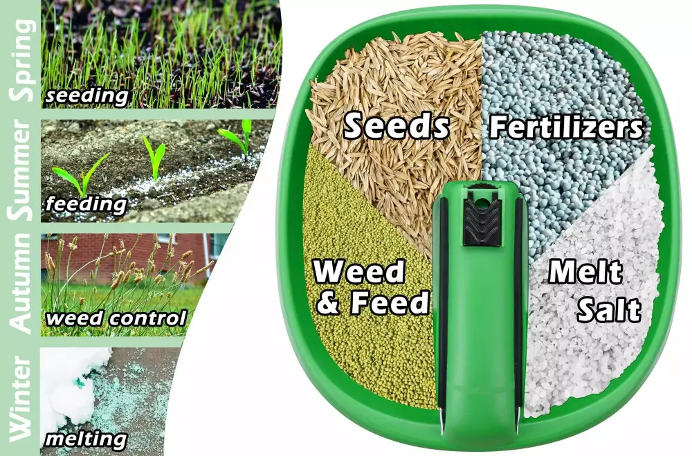 Convenient and Versatile – Experience the convenience of the Bl tezeit handheld spreader. designed to make your lawn care tasks effortless. Spread a wide range of materials. including grass seed. salt. lawn care products. fertilizer. weed control. and lime. with ease and efficiency.