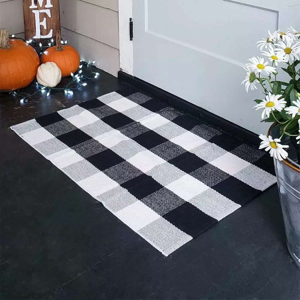 KaHouen Buffalo Plaid Rug - 24x36 Indoor/Outdoor Black and White Checkered Rug. Buffalo Plaid Outdoor Rug. Front Porch Rugs. Buffalo Check Rug Outdoor. Black and White Outdoor Rug. Plaid Door mat