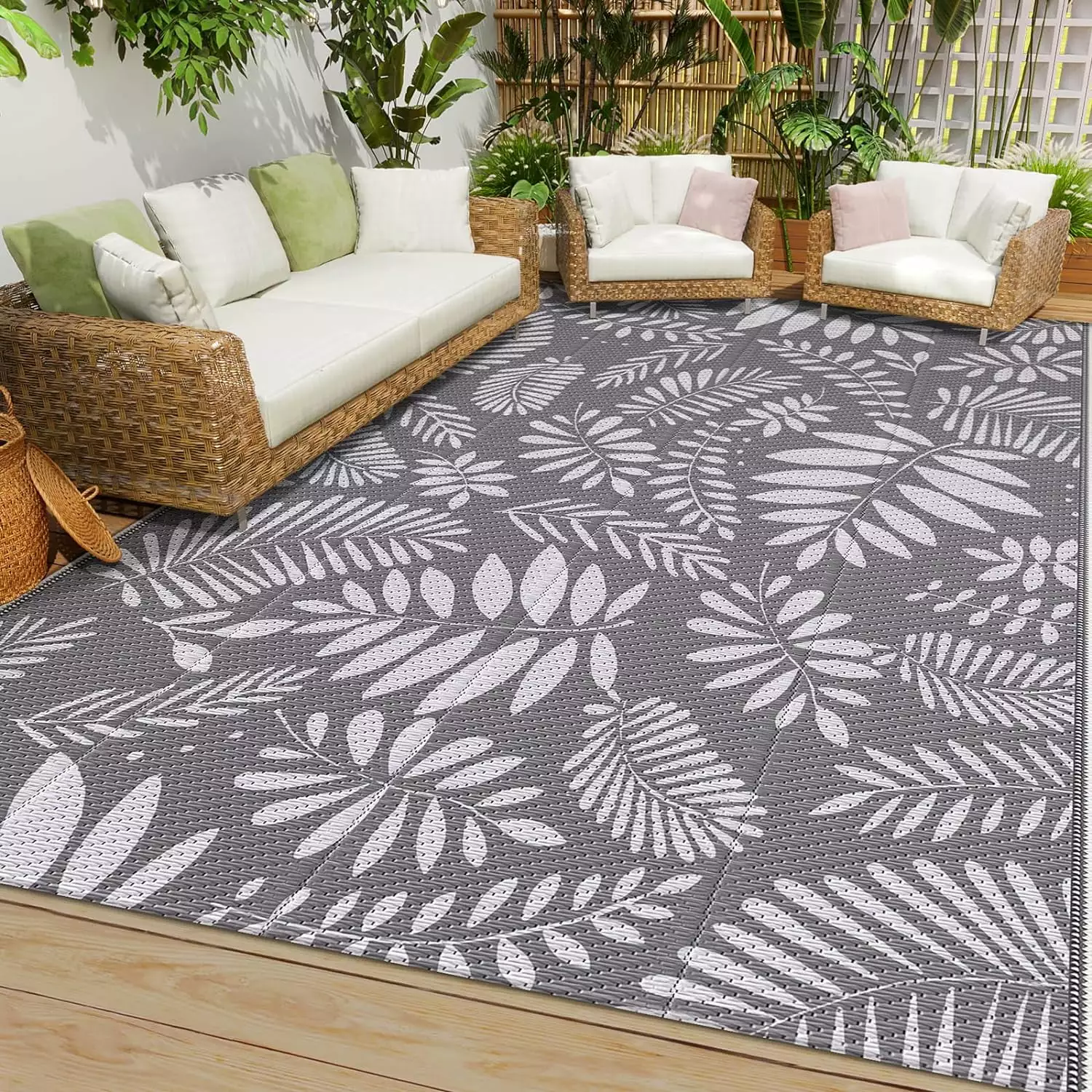 Outdoor Rug. Patio Rug. Plastic Straw Camping Rugs. Large Waterproof Area Rug and Mat for Outdoors. RV. Patio. Backyard. Deck. Porch. Beach. Balcony. (5'x 8'. White&Gray)
