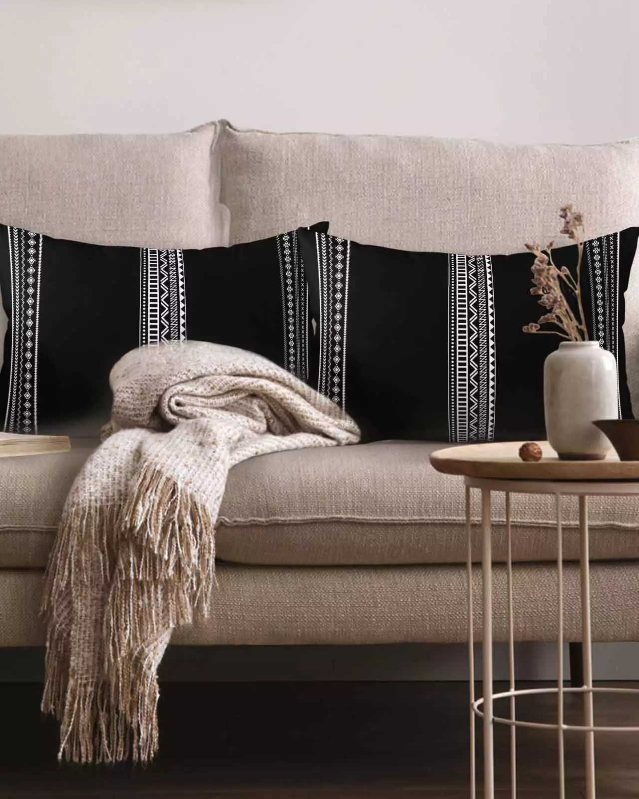 Black White Stripes 12×20 Pillow Covers Set of 2. Boho Bohemian Retro Decorations Outdoor Throw Pillow Covers. Cotton Linen Square Pillowcases for Patio Sofa Couch Bedroom Decorative